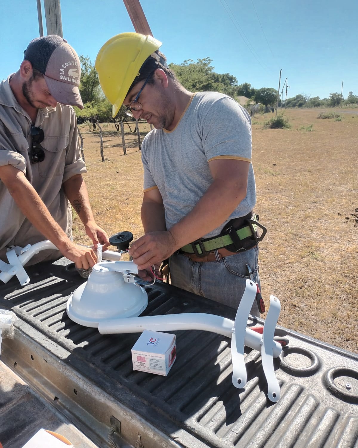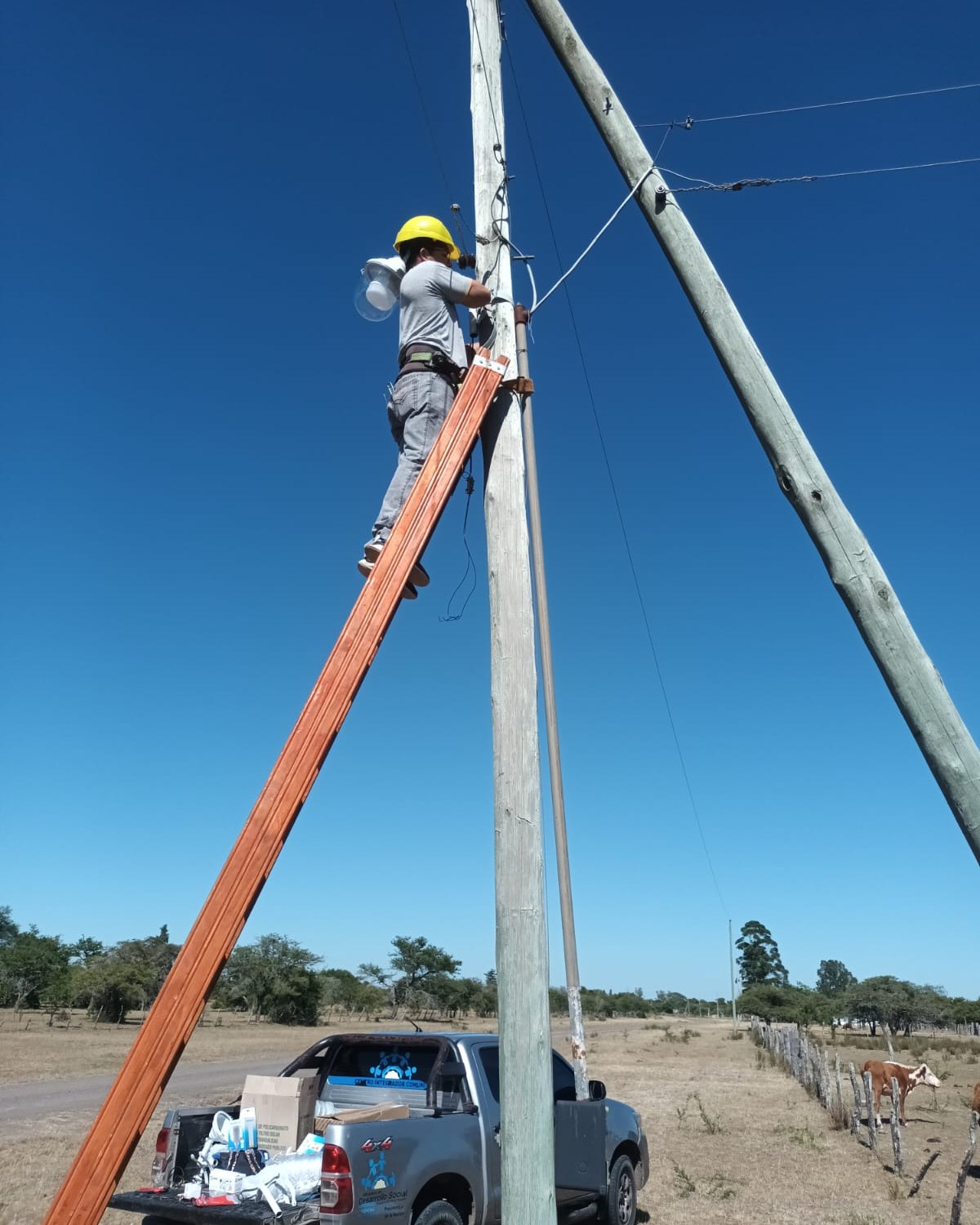 El Comisionado Interventor de la Municipalidad de Cazadores Correntinos, Dante Romero, inspeccionó los trabajos de alumbrado público que se están realizando en Paraje Basualdo.