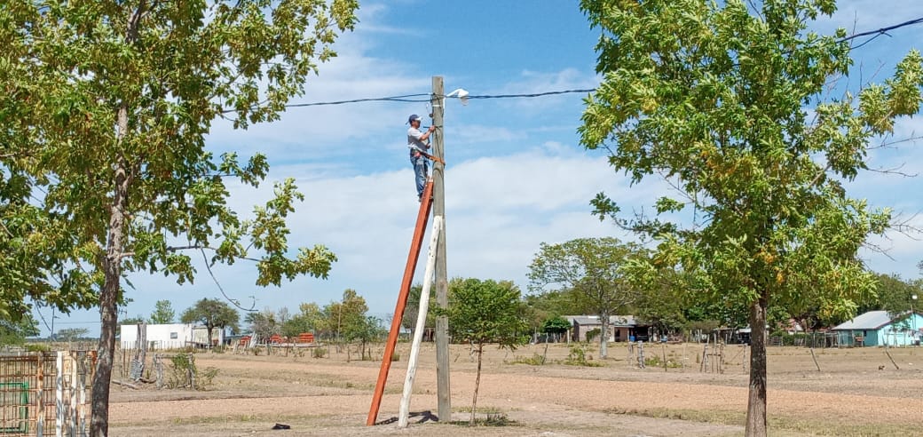 El comisionado interventor Dante Romero recorrió la plaza del Esquilador donde los trabajadores municipales están instalando nueva luminaria led.