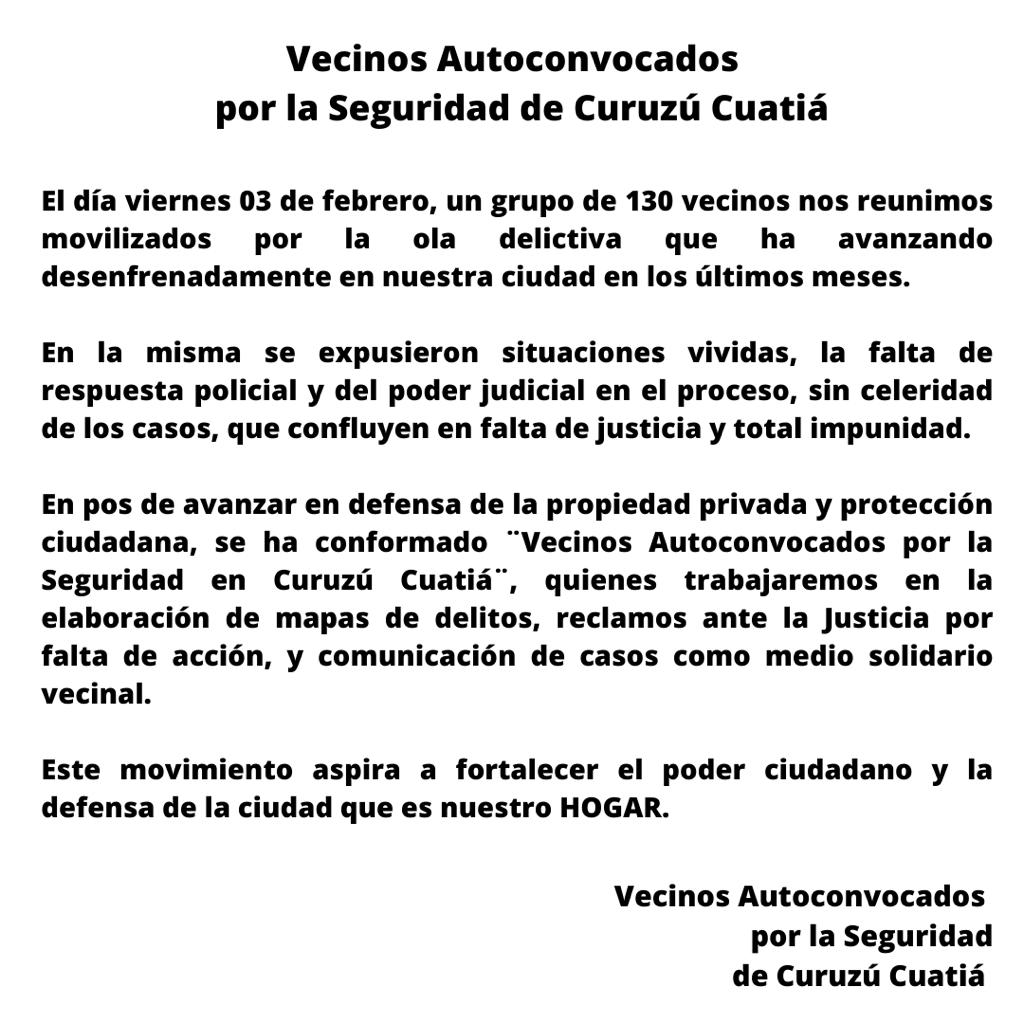 Más de un centenar de vecinos se autoconvocaron reclamando por seguridad En total son 130 y crearon una cuenta de Facebook. Se trata de personas damnificadas por distintos hechos delictivos quienes reclaman por respuesta policial y judicial. facebook twitter