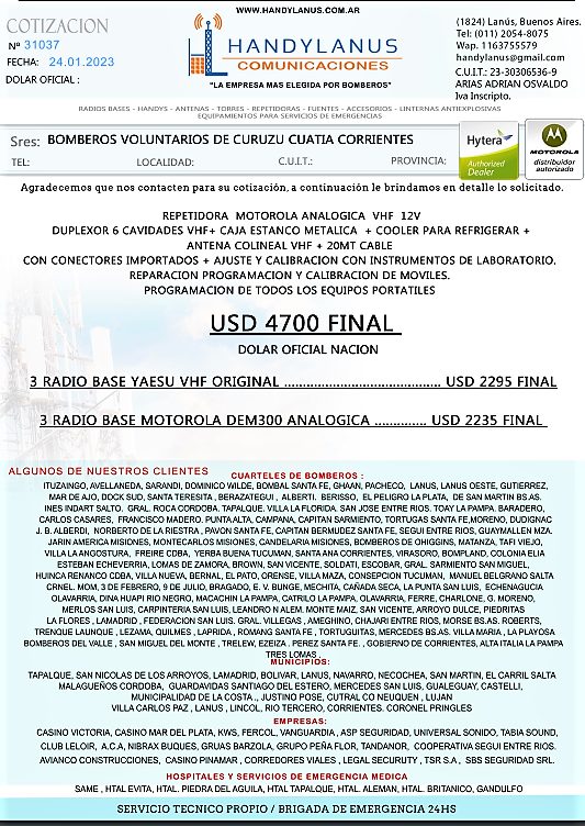 Se trata de la adquisición de equipos de comunicación a la empresa que lidera el mercado en la actualidad y que fue distinguida en diciembre del año 2022 por Motorola como la empresa de mayor crecimiento interanual.