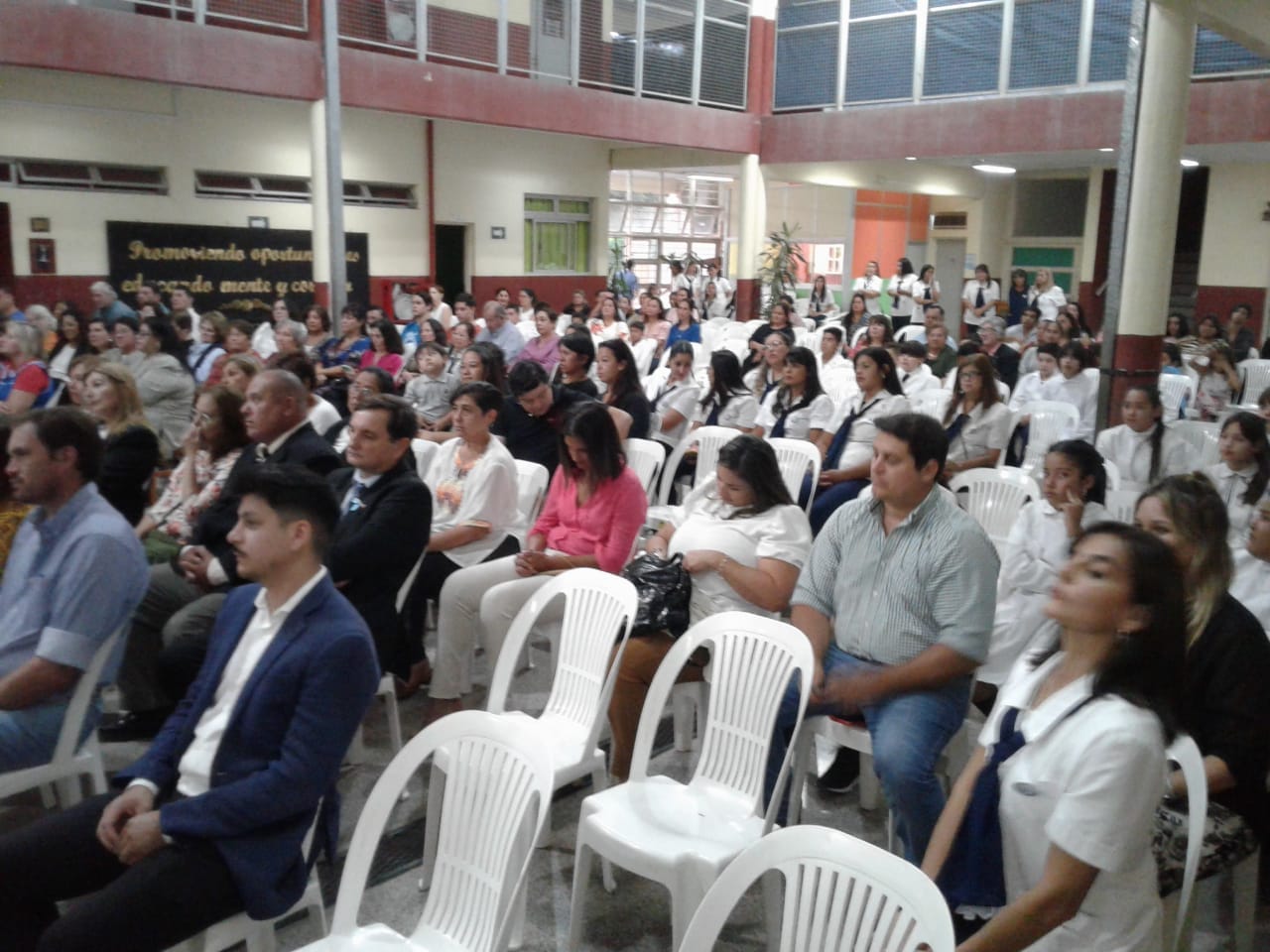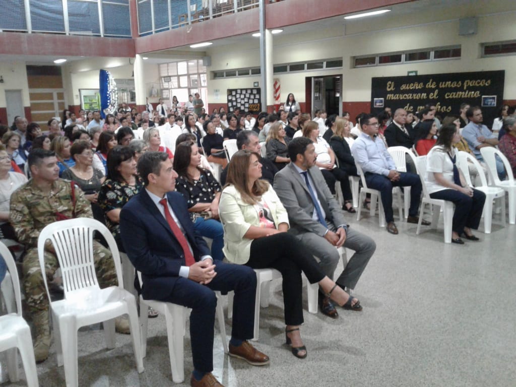 El acto fue encabezado por la Directora del establecimiento, Mercedes Vega, estando acompañada del Secretario de Gobierno y Coordinación General de la Municipalidad, Dr. Juan Ángel López, quien asistió en representación del Intendente José Irigoyen, la Directora de la Escuela 32 Belgrano Edith Leyes, funcionarios del gabinete municipal, hijos de Don Hugo Osar Rosende e invitados especiales.