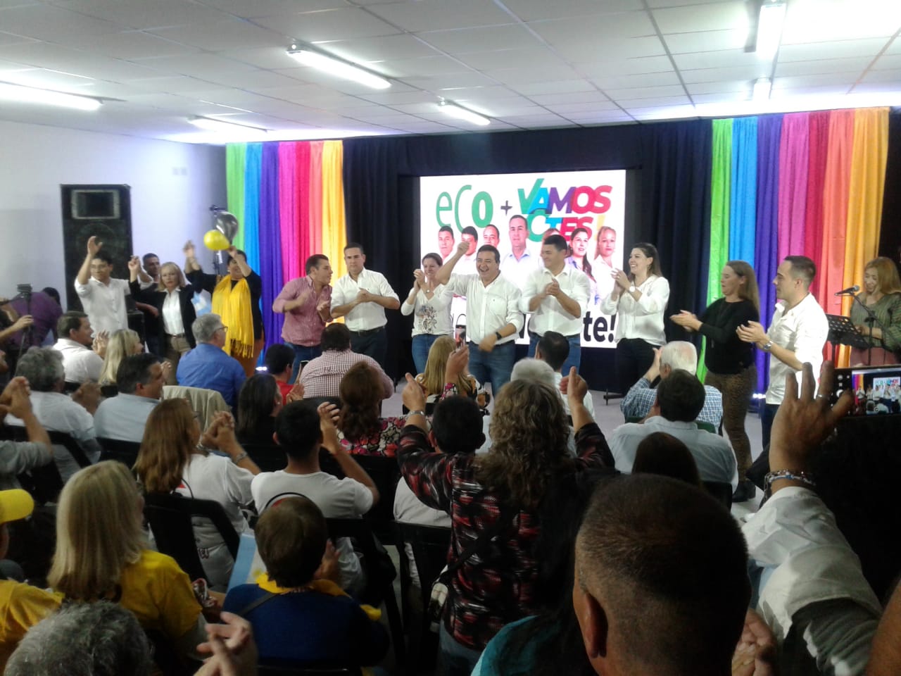 El acto partidario contó con la presencia del Intendente Municipal José Irigoyen, el Viceintendente Municipal y Presidente del PRO en nuestra ciudad Guillermo Morandini, la Presidente de la UCR Curuzú Cuatiá y Senadora Provincial Verónica Espíndola, el Diputado Provincial y Presidente de Unión Popular Egui Benítez, presidentes y referentes de los distintos partidos que componen la alianza ECO + VAMOS CORRIENTES, funcionarios, concejales y un gran número de afiliados y simpatizantes que colmaron el salón y las afueras del mismo desde donde siguieron mediante una pantalla gigante.