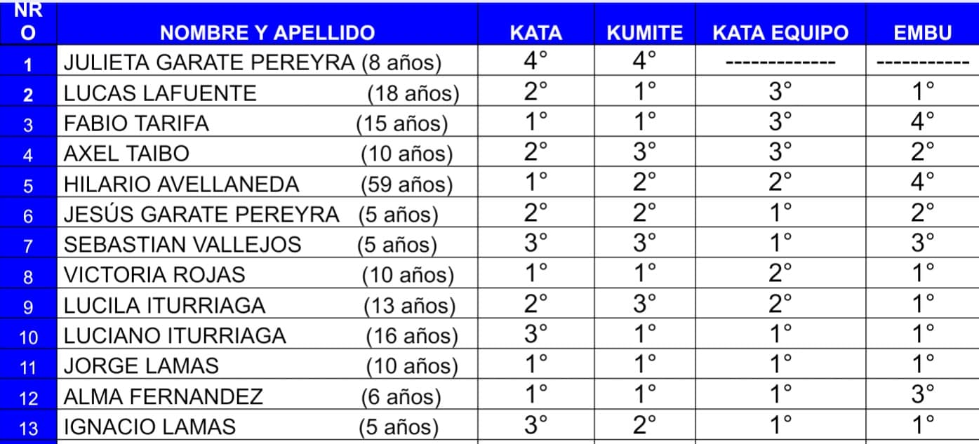 La mencionada institución de nuestra ciudad, cuenta con más de 60 alumnos inscriptos a la fecha, con edades de entre los 3 y 60 años, ha obtenido increíbles resultados, como se detalla más abajo. Cabe destacar el gran esfuerzo por parte de los alumnos y padres, quienes han asistido en 8 autos particulares.