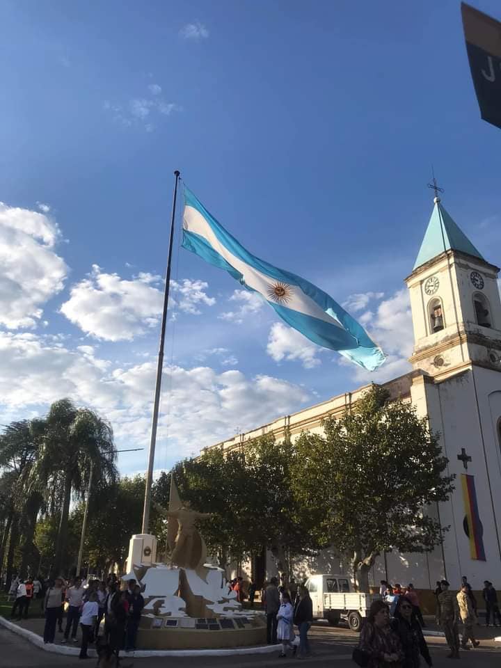 Seguidamente la comitiva se trasladó hasta el mástil principal donde se realizó el izamiento del Pabellón Nacional, luego concurrieron a la Parroquia Nuestra Señora del Pilar dónde se ofició el Solemne Tedeum que estuvo a cargo del Cura Párroco Ariel Giménez.