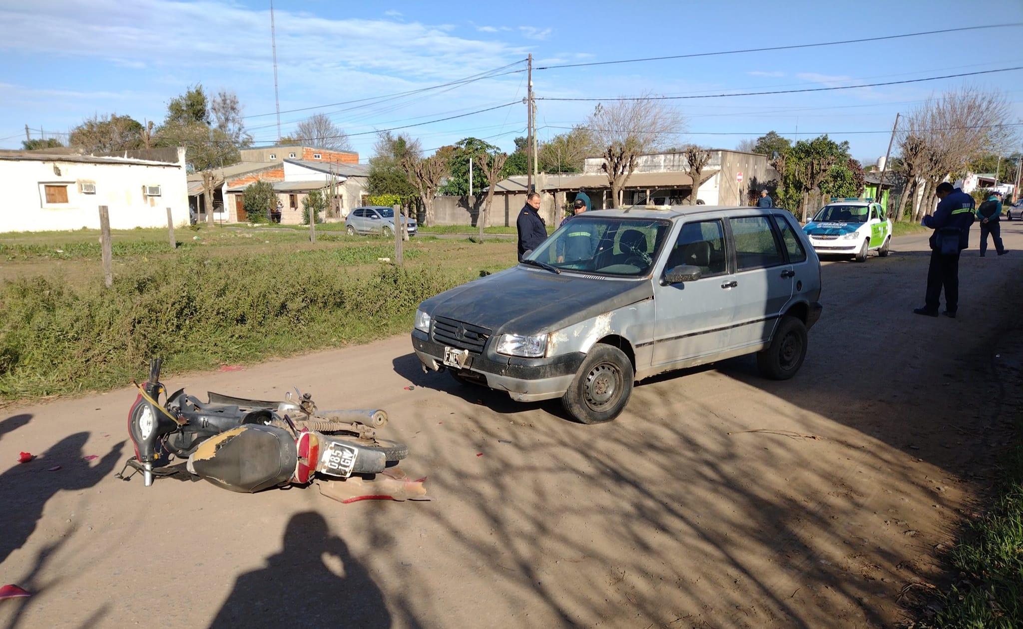 Una moto de 110 centímetros cúbicos y un automóvil Fiat Uno protagonizaron un accidente en horas de la mañana del martes sobre calle Abigail Pintos al 300, a metros de su intersección con Juan Pujol, en el Barrio Norte de nuestra ciudad.