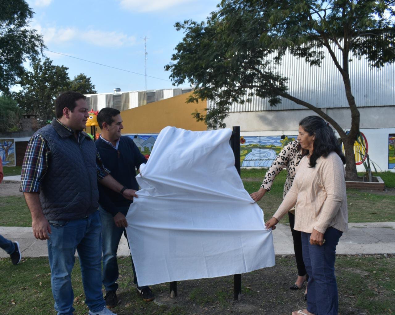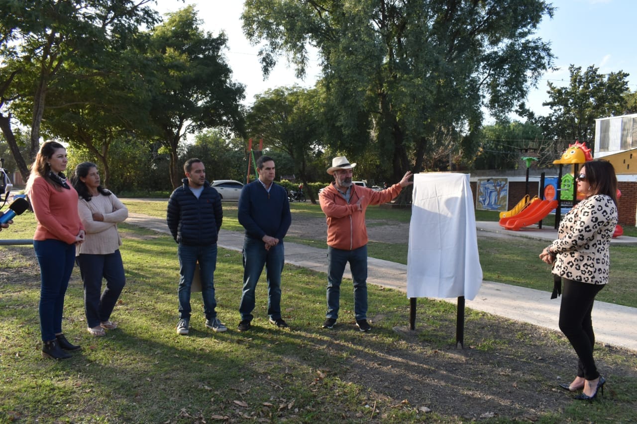 Además, se descubrió una placa especial con una reseña histórica de este punto que es el lugar de juego y encuentro de muchos curuzucuateños a diario.