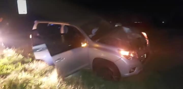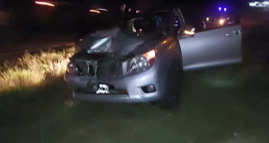 En el punto indicado, un vehículo tipo SUV marca Toyota Land Cruiser PRADO color gris plata ocupado por una familia procedente de Curuzú Cuatiá, no pudo evitar colisionar contra un ternero pelaje "pampa negro”, estimado en más de 150 Kgs de peso, sin marcas ni señales.