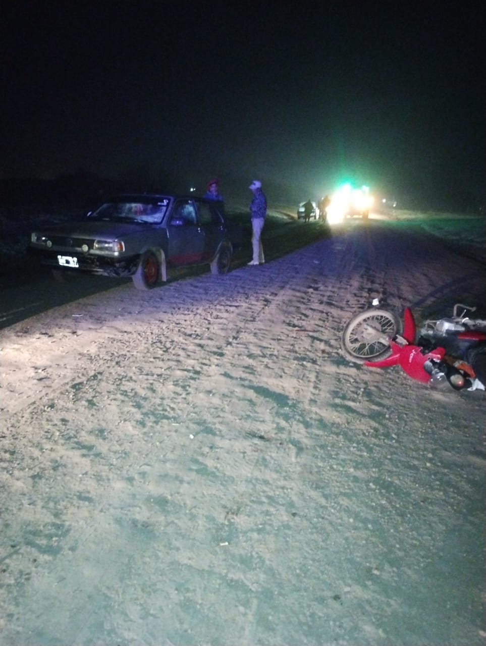 Un hombre, de poco más de 40 años de edad, terminó con lesiones de gravedad tras estrellarse con su moto contra la parte trasera de un automóvil Volkswagen Senda, la colisión se produjo cerca de las 6 de la mañana del domingo sobre la ex ruta 14, a metros de un conocido local bailable de la zona.