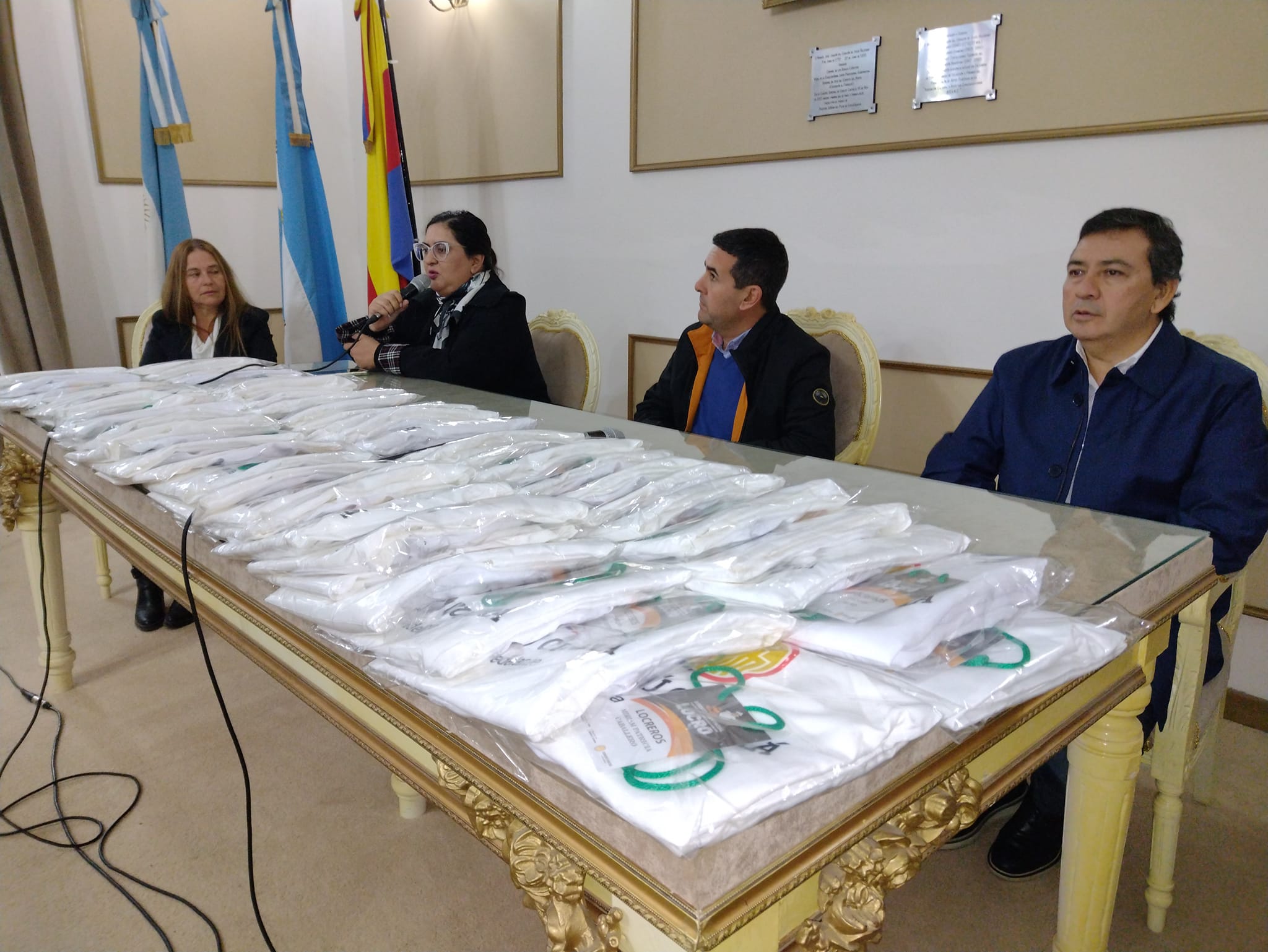 También formaron parte de la conferencia la actual Reina del Locro, el ganador de la última edición y los locreros que participarán este año a quienes las autoridades presentes le entregaron los delantales para la competencia.