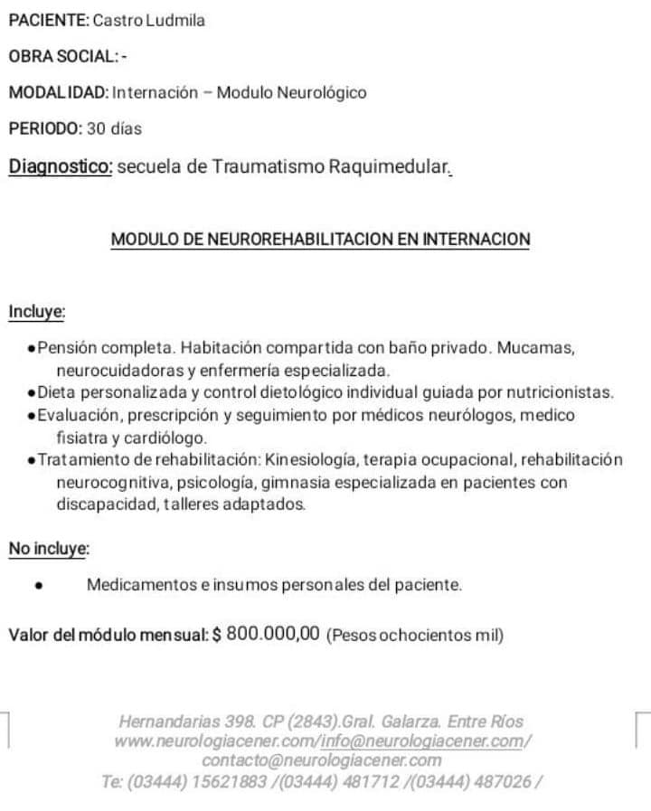 “Ludmi ayer ingresò al Centro de rehabilitación. Gracias a todas las personas que sin conocer aportaron y nos ayudaron para que Ludmi hoy pueda comenzar su Rehabilitación. Gracias al Sr Egui Benítez y Sr Intendente José Irigoyen a Nicolás Álvarez que me ayudaron a reunir lo que me faltaba para Ludmi. A la familia y amistades que nos siguen acompañando. Muchas gracias a todos los que siguen estando y acompañando a Ludmi día a día con mensajes, llamadas trasmitiendo fortaleza y oraciones. Es muy importante para seguir”, escribió la madre de Ludmila.
