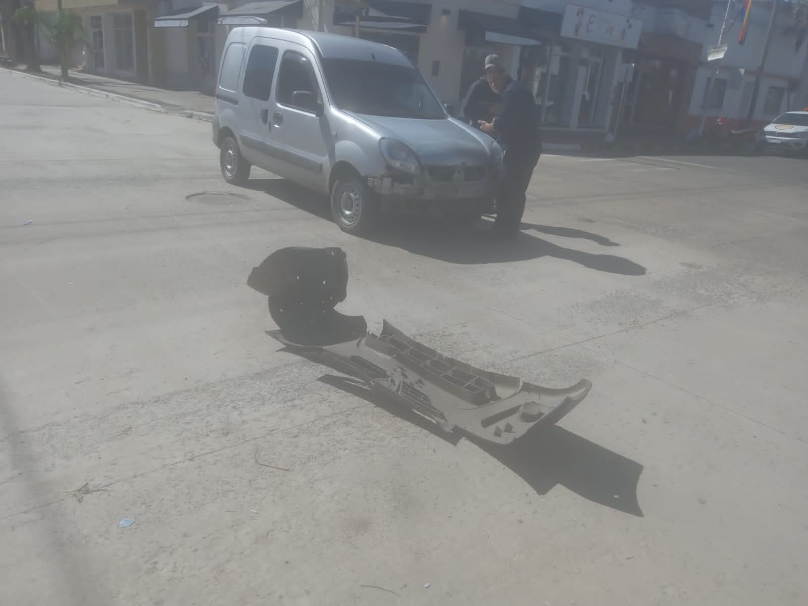 El rodado mayor circulaba por Posadas mientras que la moto venía por la arteria principal y como consecuencia del impacto el paragolpes delantero del utilitario se desprendió.