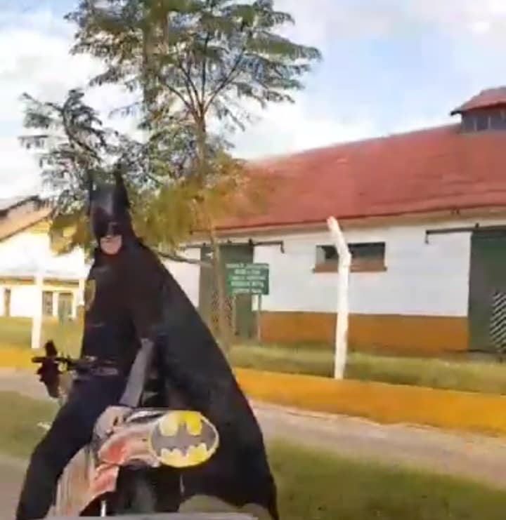 Los videos y fotos del hombre disfrazado, con su capa y a bordo de la “batimoto”, no tardaron en viralizarse en las redes.