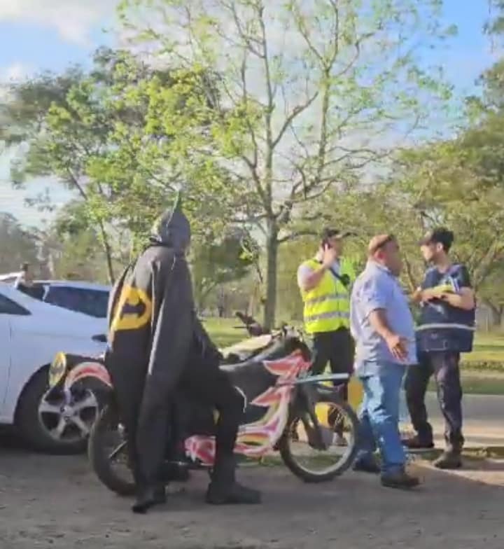 Autoridades del área indicaron a Enfoque Digital que un hombre disfrazado de “Batman” fue parado por los inspectores cuando realizaban un operativo sobre Avenida República Oriental del Uruguay, frente al Parque Zambrana y el ejército.