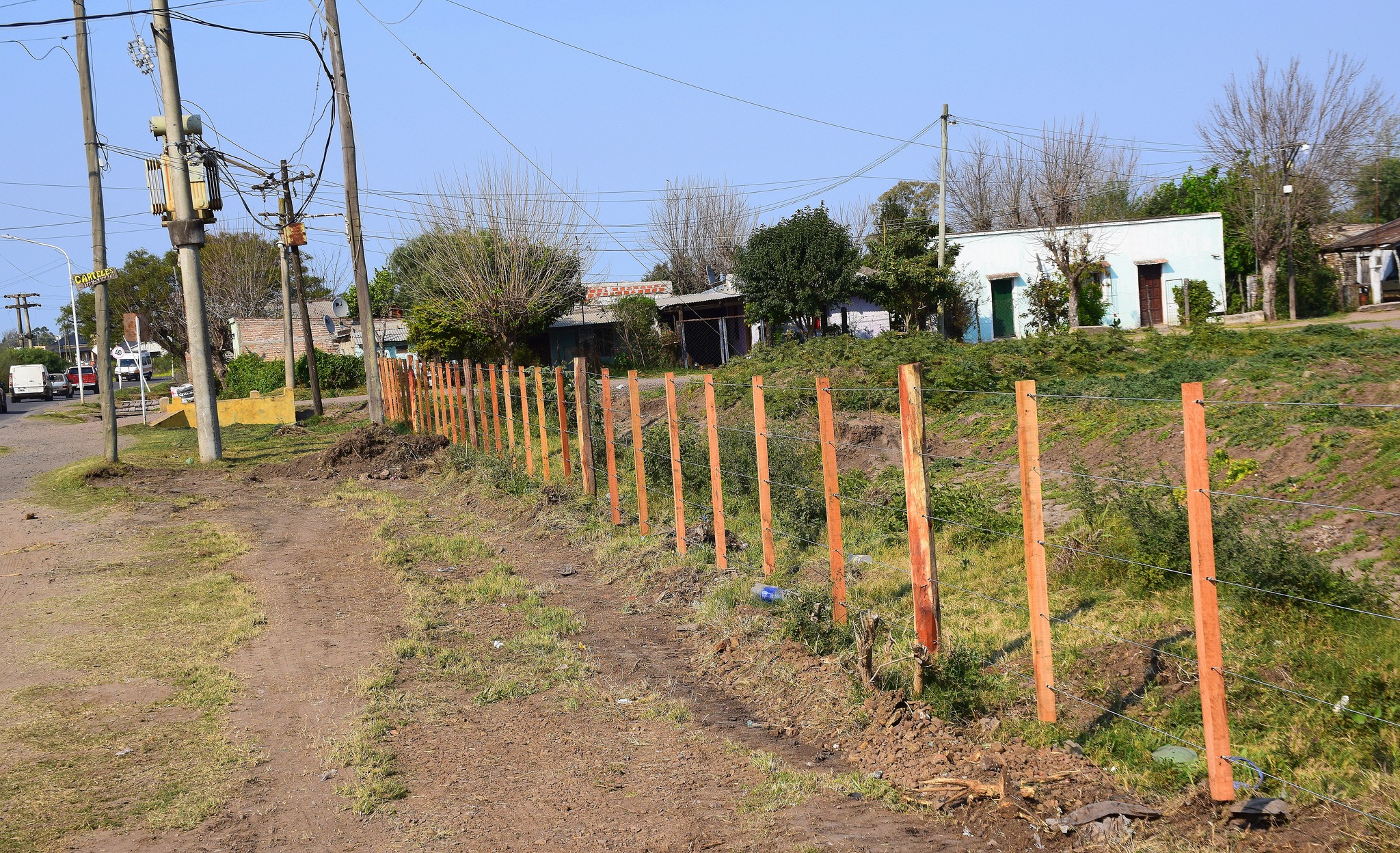 Por otra parte, se realizan trabajos en el acceso al Barrio Las Flores, se trata del cerramiento perimetral y limpieza del predio lindero al ferrocarril como también así el entubamiento del principal acceso de este barrio.
