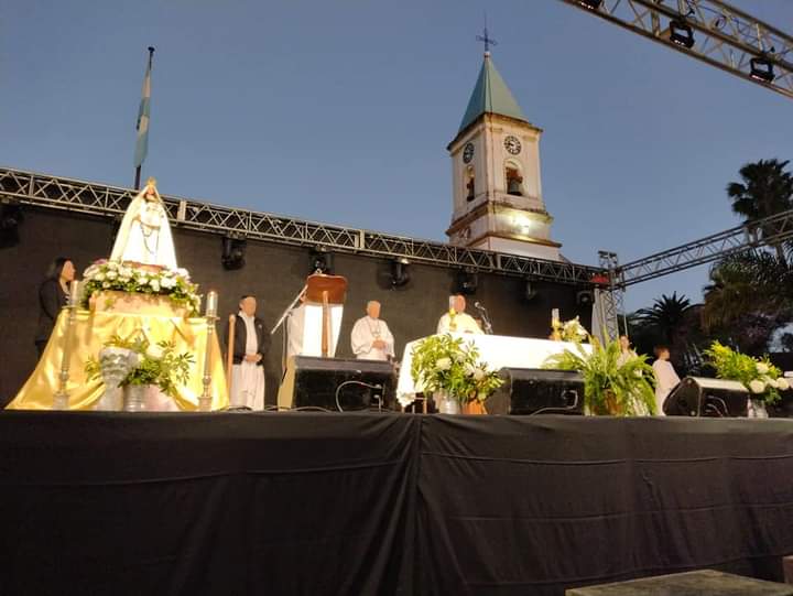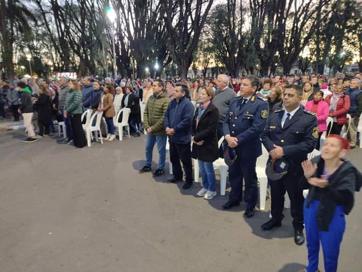 En contra mano, por la arteria principal, los fieles caminaron junto a la Virgen que cerró su recorrido frente a la Parroquia dónde se celebró la Misa Central a cargo del Párroco Ariel Giménez. Autoridades del ejecutivo municipal, funcionarios, concejales y representantes de las fuerzas de seguridad, participaron de la celebración.