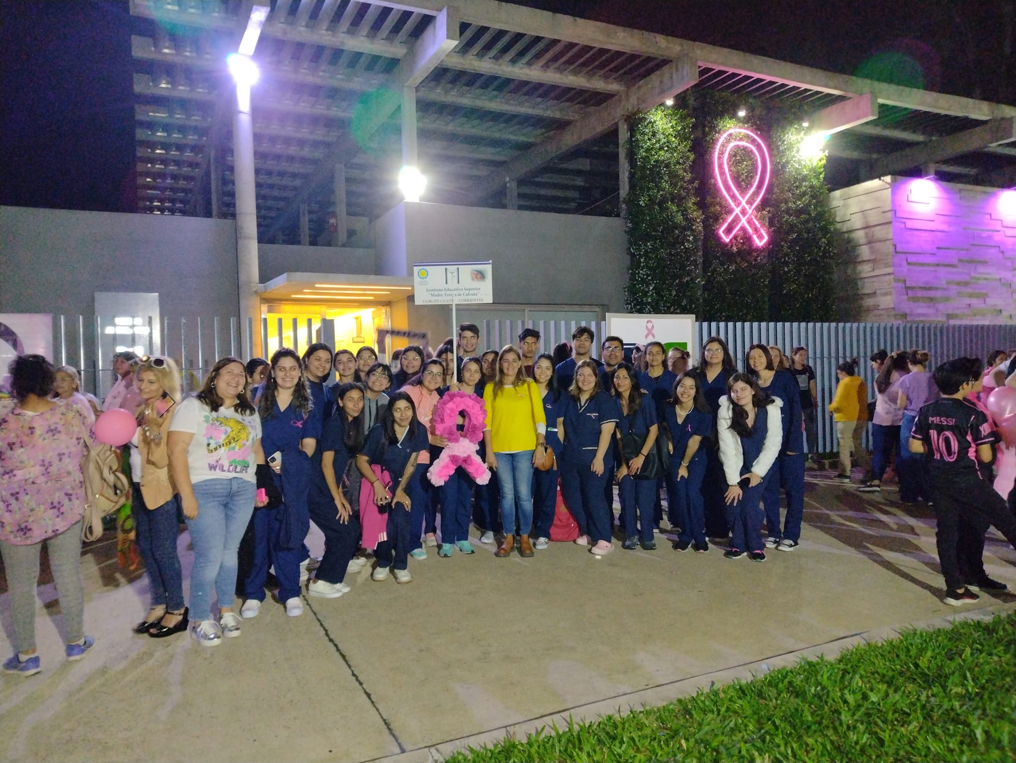 La marcha, en la que prevaleció el color rosa, se extendió por la arteria principal y culminó frente al Centro Oncológico donde fueron recibidas por la Directora General Ingrid Rung, equipo médico y personal del centro.