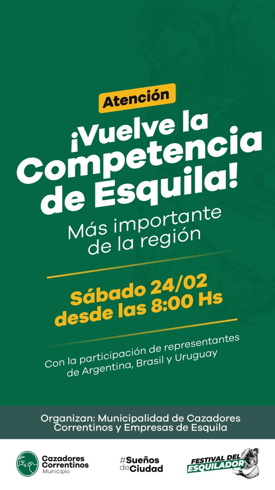 El evento es organizado por la Municipalidad de Cazadores Correntinos, bajo la gestión del Comisionado Interventor Dante Romero, y las empresas de esquila.