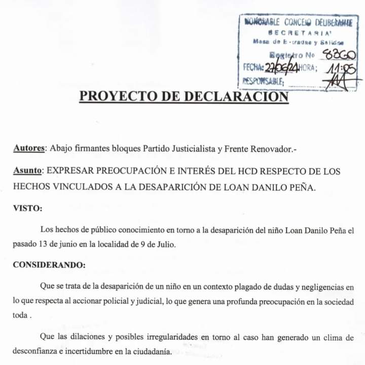 "Existe un interés legítimo de nuestra comunidad y de todos los correntinos de que se esclarezcan las causas de su desaparición y las dudas respecto de las irregularidades y/o negligencias en el accionar policial y judicial. Por ello solicitamos al Cuerpo la declaración de interés que se acompaña", señala el proyecto.