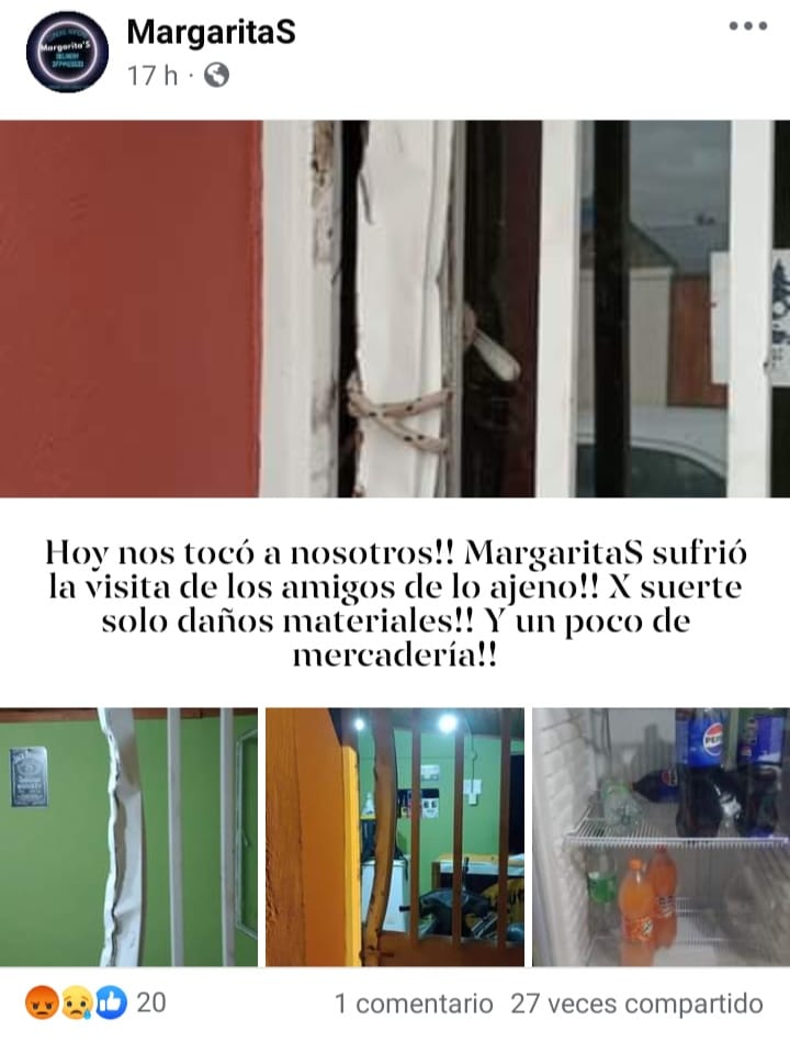 Aparentemente el robo ocurrió el jueves, en la publicación el propietario cuenta que provocaron daños materiales y que además se llevaron algo de mercaderías.