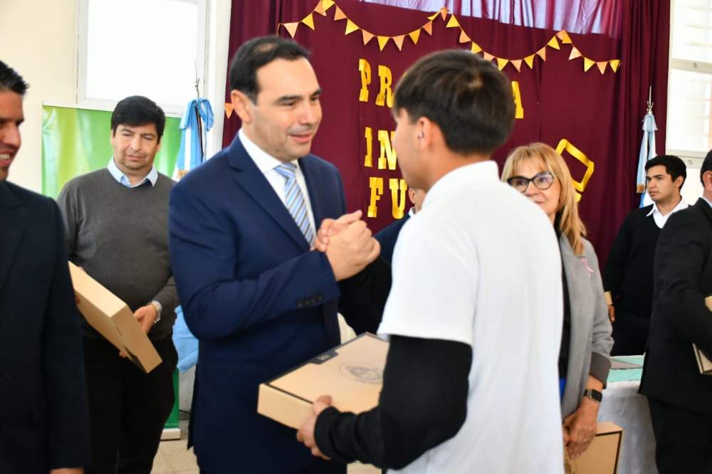 El gobernador Gustavo Valdés entregó este viernes en la joven comuna de Cazadores Correntinos, 24 notebooks del programa “Incluir Futuro” a alumnos de primer y segundo año del Colegio secundario de dicho lugar.