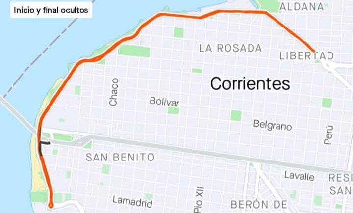 La competencia de 10k tuvo este recorrido: Largada Costanera Juan Pablo II (Alt Calle Lamadrid) en dirección sur girando luego en la rotonda del cacique rumbo norte hace la banda interna de la Av.Juan Pablo II con dirección a la Av. Gral. San Martin, continua por calle Placido Martínez, gira levemente a la izquierda en Av. Juan Pujol hasta la altura de calle Brasil donde deben girar en U y retomar Av. Juan Pujol, Placido Martínez, Av. Gral. San Martin, Av. Juan Pablo II y llegada