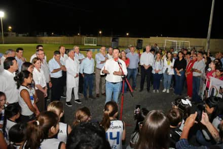 Cerca de las 21, el gobernador Gustavo Valdés se trasladó hasta la cancha del Club Victoria para dejar inaugurada la nueva cancha sintética para la práctica de hockey.