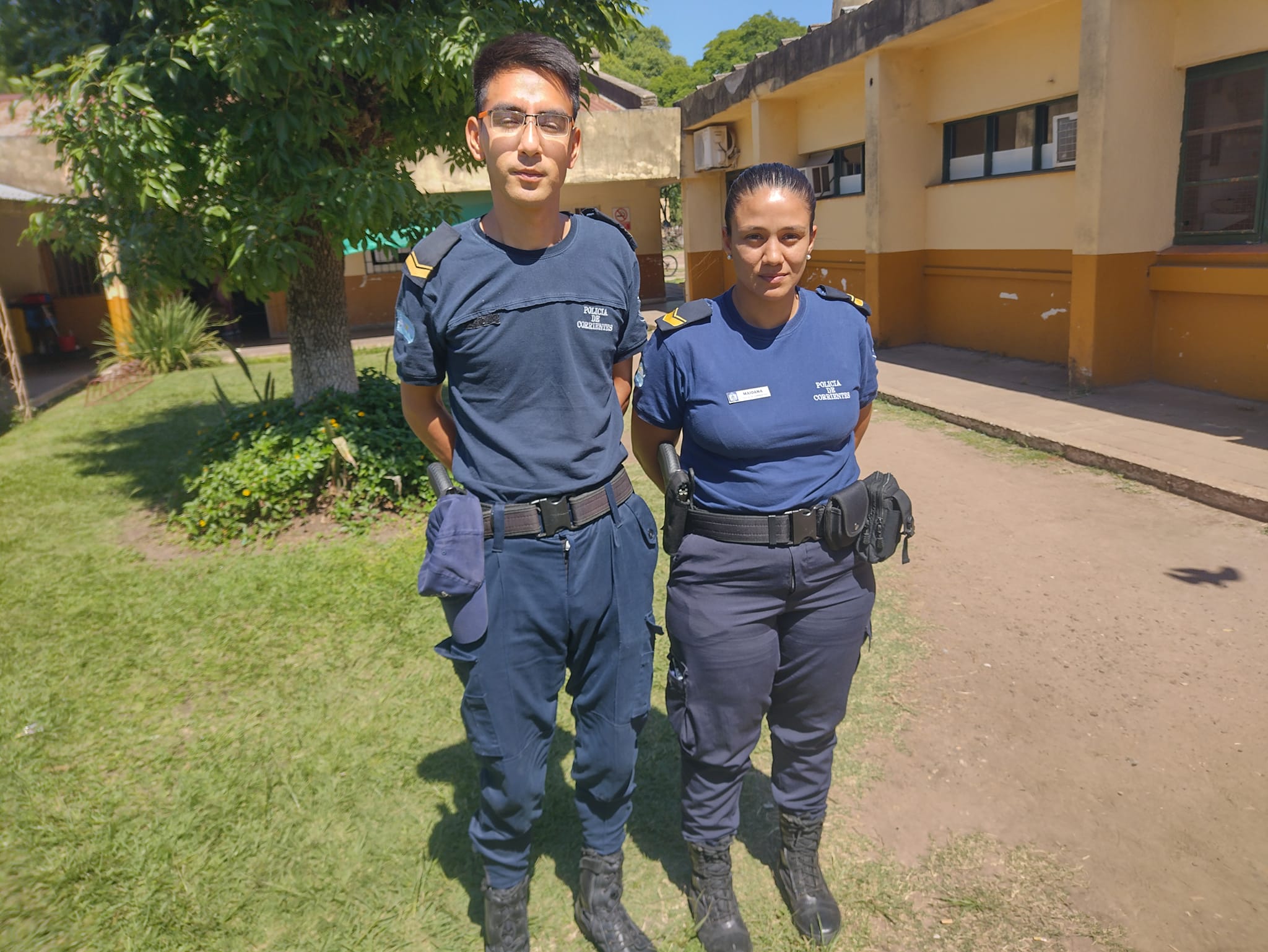 Los encontramos a ambos cumpliendo sus funciones de recorrida de prevención, en esta oportunidad en el Hospital Irastorza, donde nos contaron que ambos son oriundos de la localidad de Mercedes y que egresaron este año tras realizar el curso interfuerzas en la escuela de suboficiales con sede en nuestra ciudad.