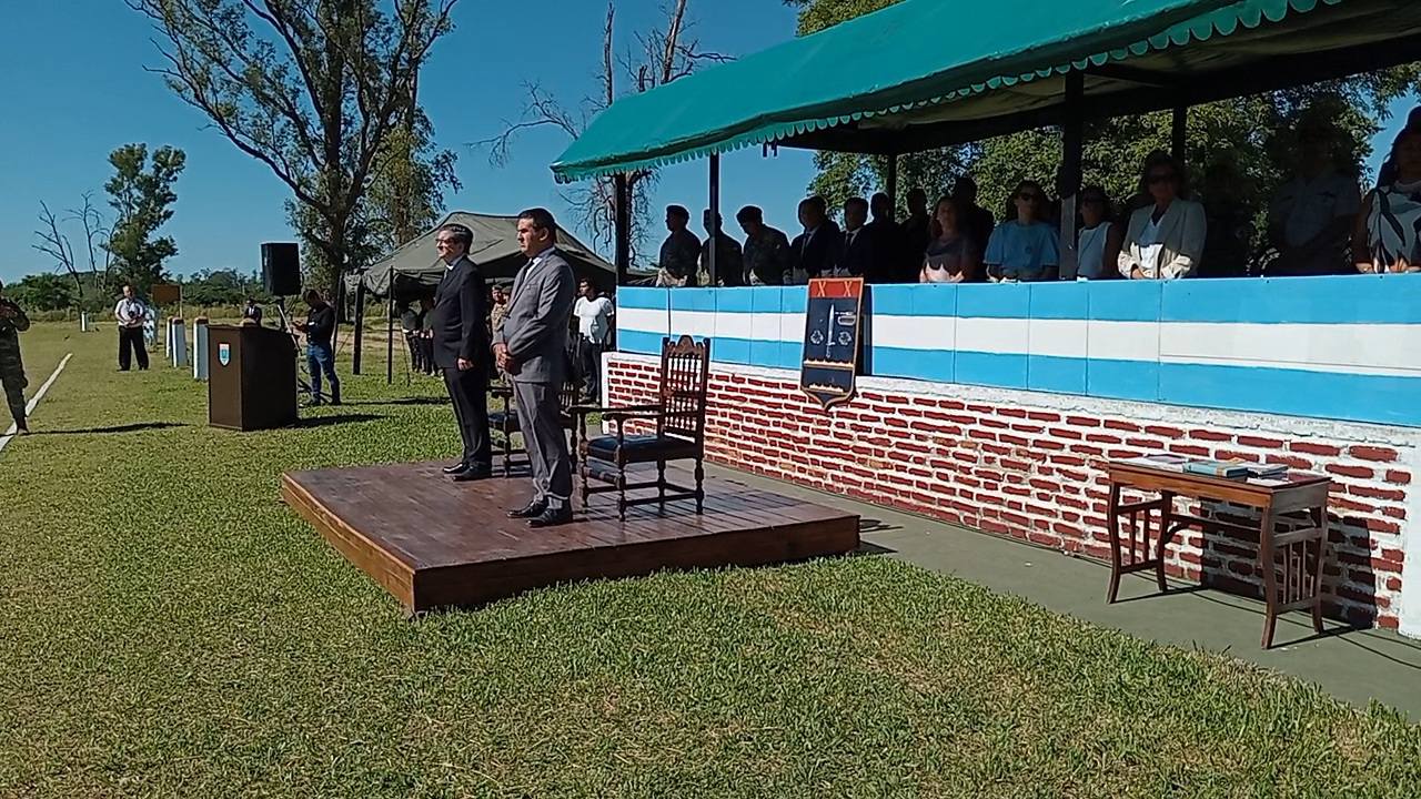 El acto fue encabezado por el Comándate de Adiestramiento y Alistamiento del Ejército Argentino, el general de Brigada Oscar Zarich, quien estuvo acompañado por el Vicegobernador de la Provincia Pedro Braillard Poccard y el Intendente Municipal José Miguel Ángel Irigoyen.