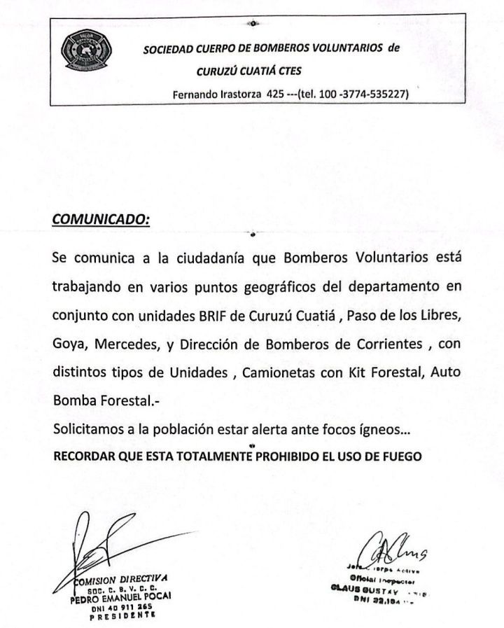 Desde la Sociedad Cuerpo de Bomberos Voluntarios emitieron un comunicado dirigido a la ciudadanía.