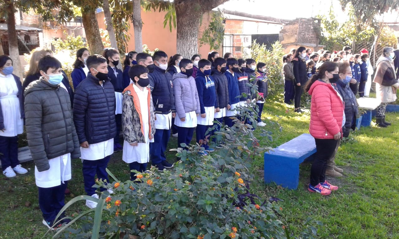 Para recordar el Día de la Afirmación de los Derechos Argentinos sobre Malvinas es Islas del Atlántico Sur, la escuela llevo adelante una emotiva ceremonia en la plaza que lleva el nombre de Meza que se encuentra en el barrio de INVICO, pegada a la casa donde viven su madre y hermanos.