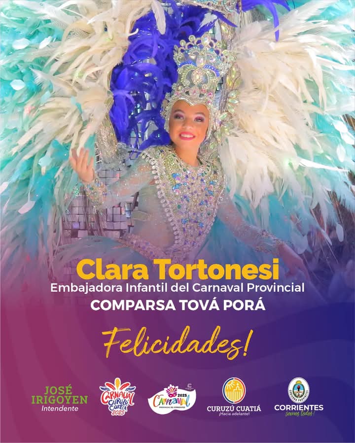 Recordemos que Clara había sido elegida como Reina del Carnaval Curuzucuateño 2025 en el rubro de Comparsa Infantil.