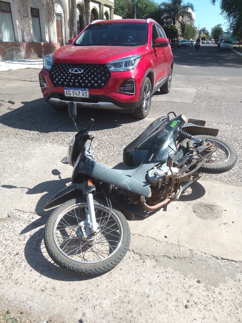 De acuerdo a lo informado a Enfoque Digital, un automóvil guiado por un masculino mayor de edad y una moto protagonizaron en horas de la mañana del lunes una colisión en la esquina de las calles Dr. Pozzi y San Martin.
