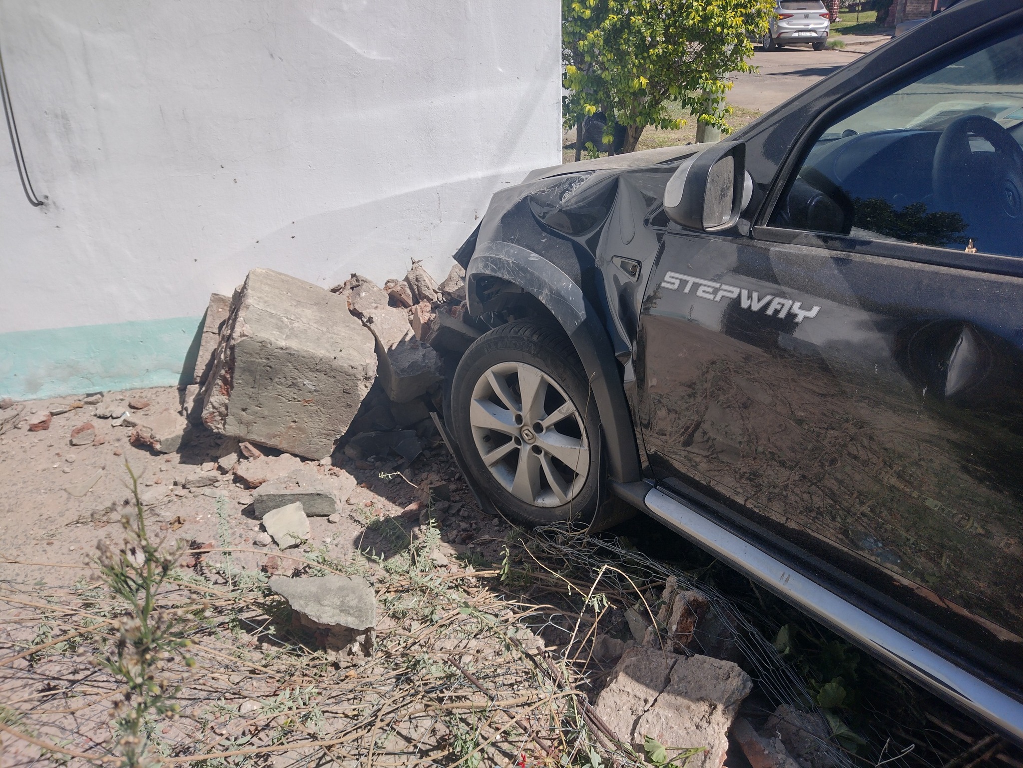 El remis había dejado metros antes a unos pasajeros y siguió su recorrido, pero el conductor se descompensó, perdiendo el control de su Renault Stepway, subiéndose a una vereda, derribando un pilar y colisionando contra una casa cuya dueña salió desesperada sin entender nada tras escuchar el fuerte estruendo.