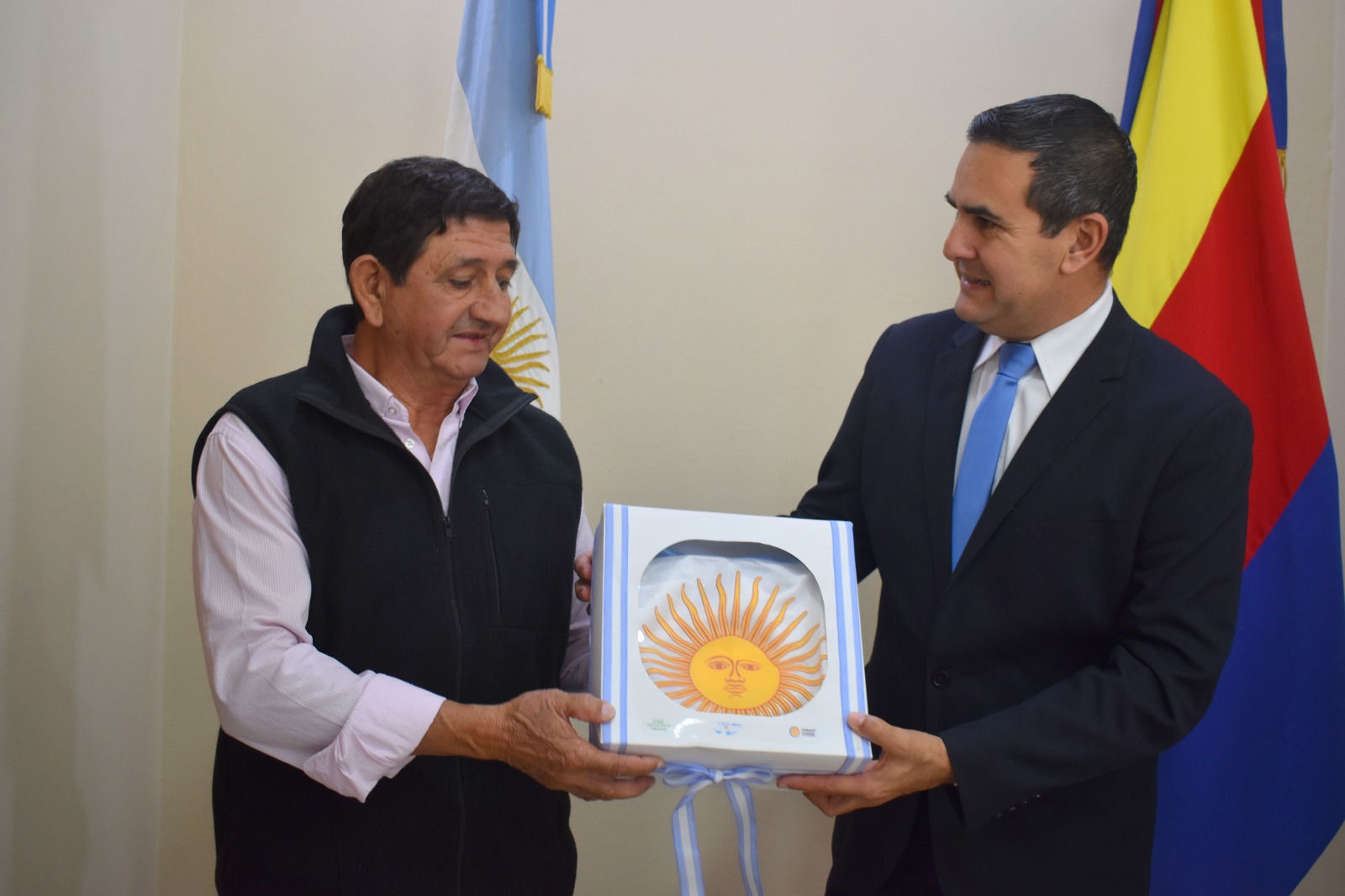 En un sencillo pero sentido encuentro, del que también formó parte el ex combatiente Alfredo Almirón y el Director de Protocolo y Ceremonial Marcelo Sandoval, el jefe comunal le hizo entrega a Ramón de una Bandera Argentina, que llevará consigo para que flamee en suelo malvinense.