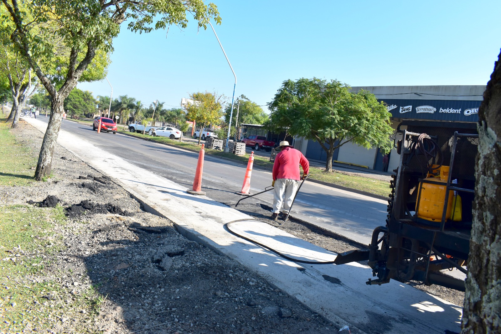 Avanzan significativamente en nuestra ciudad los trabajos de bacheo y preparación de calzada para el futuro reasfaltado de la Avenida República Oriental del Uruguay tras haber avanzado en la Avenida Eva Perón.