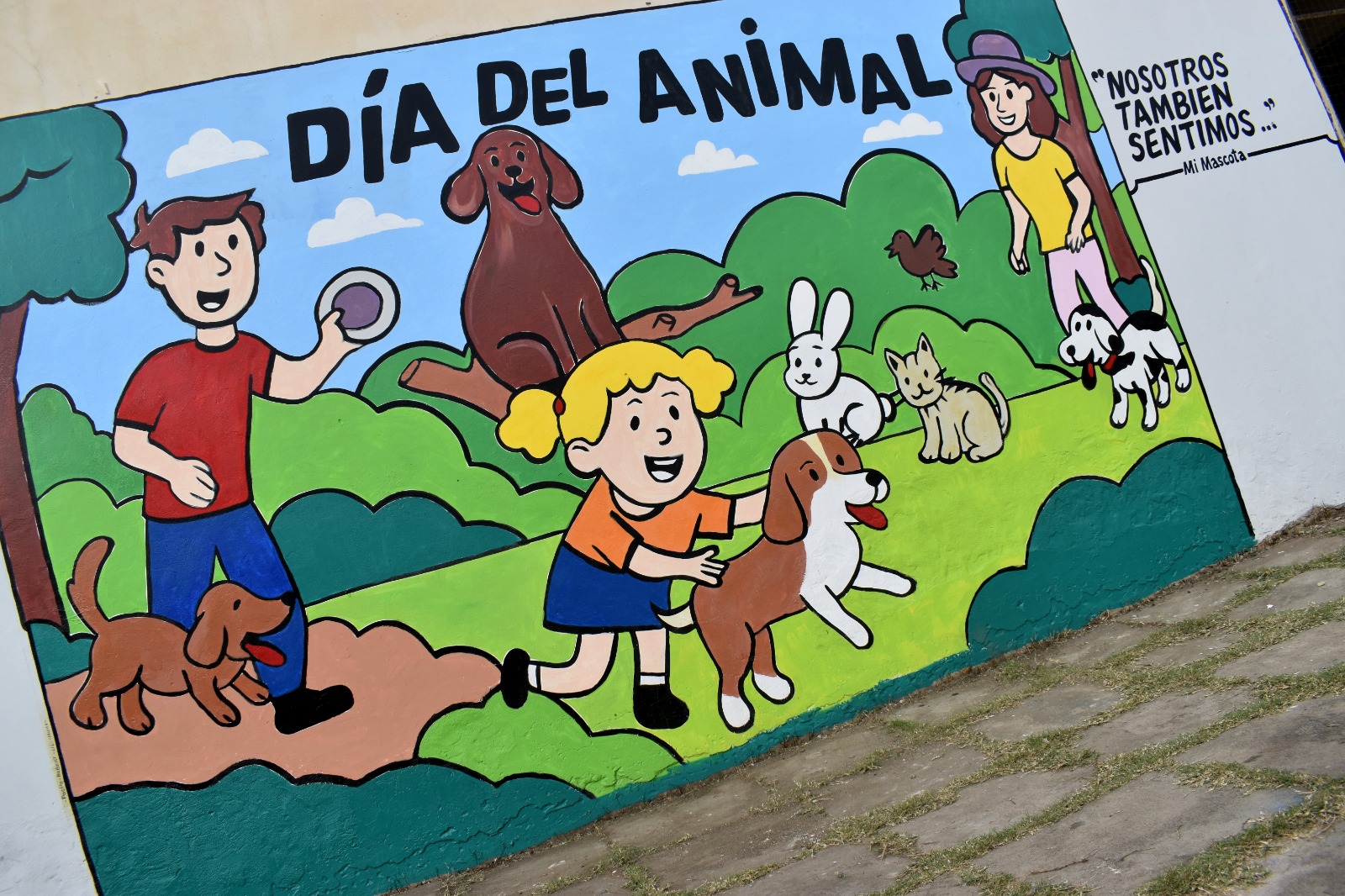 En horas de la mañana del viernes pasado tuvo lugar la inauguración del mural por el Día del Animal, pintado por personal del Área de Coordinación de Zoonosis Municipal en el patio de la Escuela 16 de noviembre del barrio de INVICO.