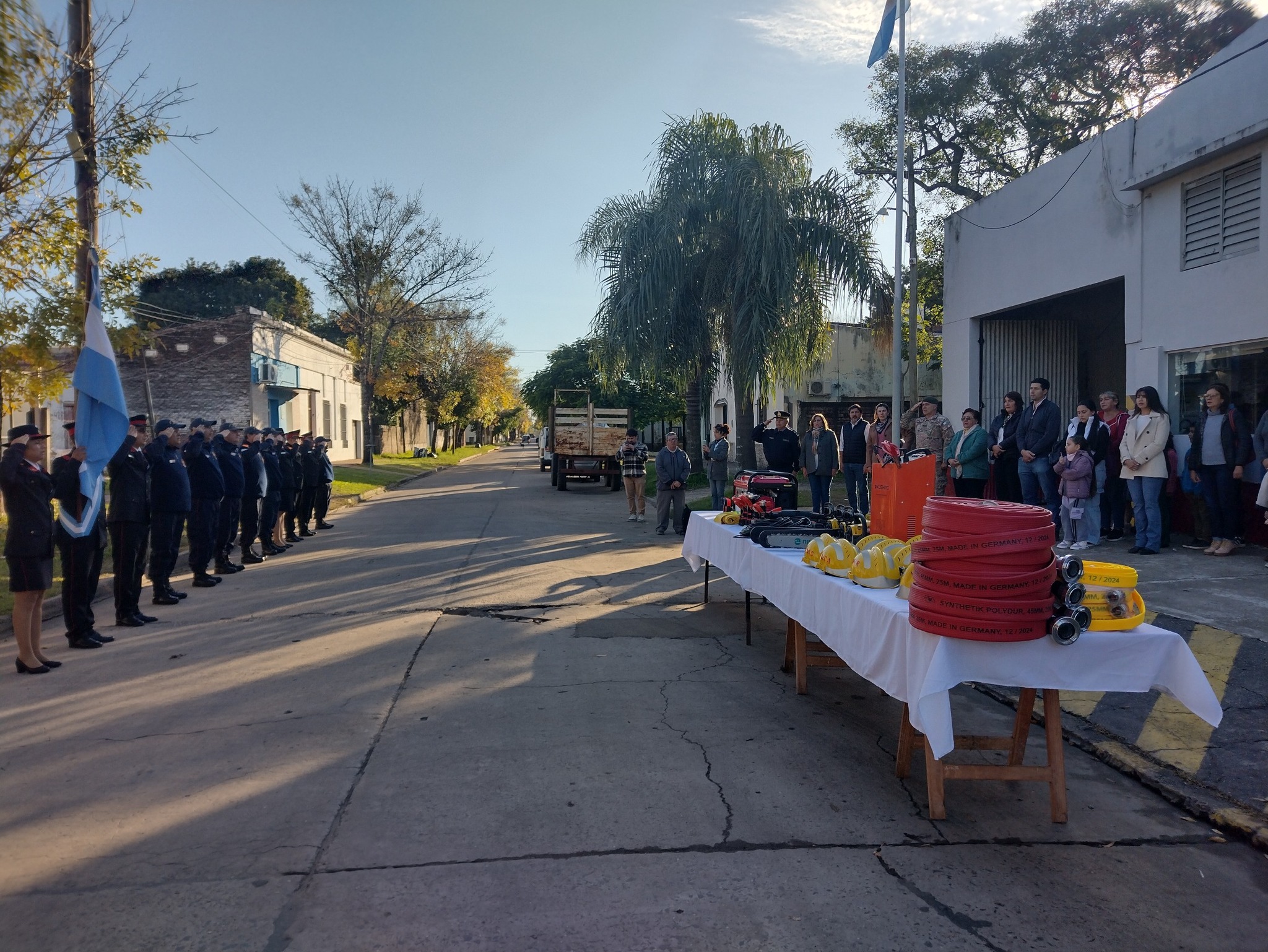 La ceremonia también contó con la presencia de la Presidente del HCD Dra. Marisa Acuña, el Jefe del Estado Mayor del Comando de la Primera División de Ejercito Coronel Gastón Ithurrart, el Jefe de la Comisaria Primera Comisario Néstor Fleita, concejales, funcionarios municipales, representantes de instituciones y miembros de la comisión de la institución bomberil local.