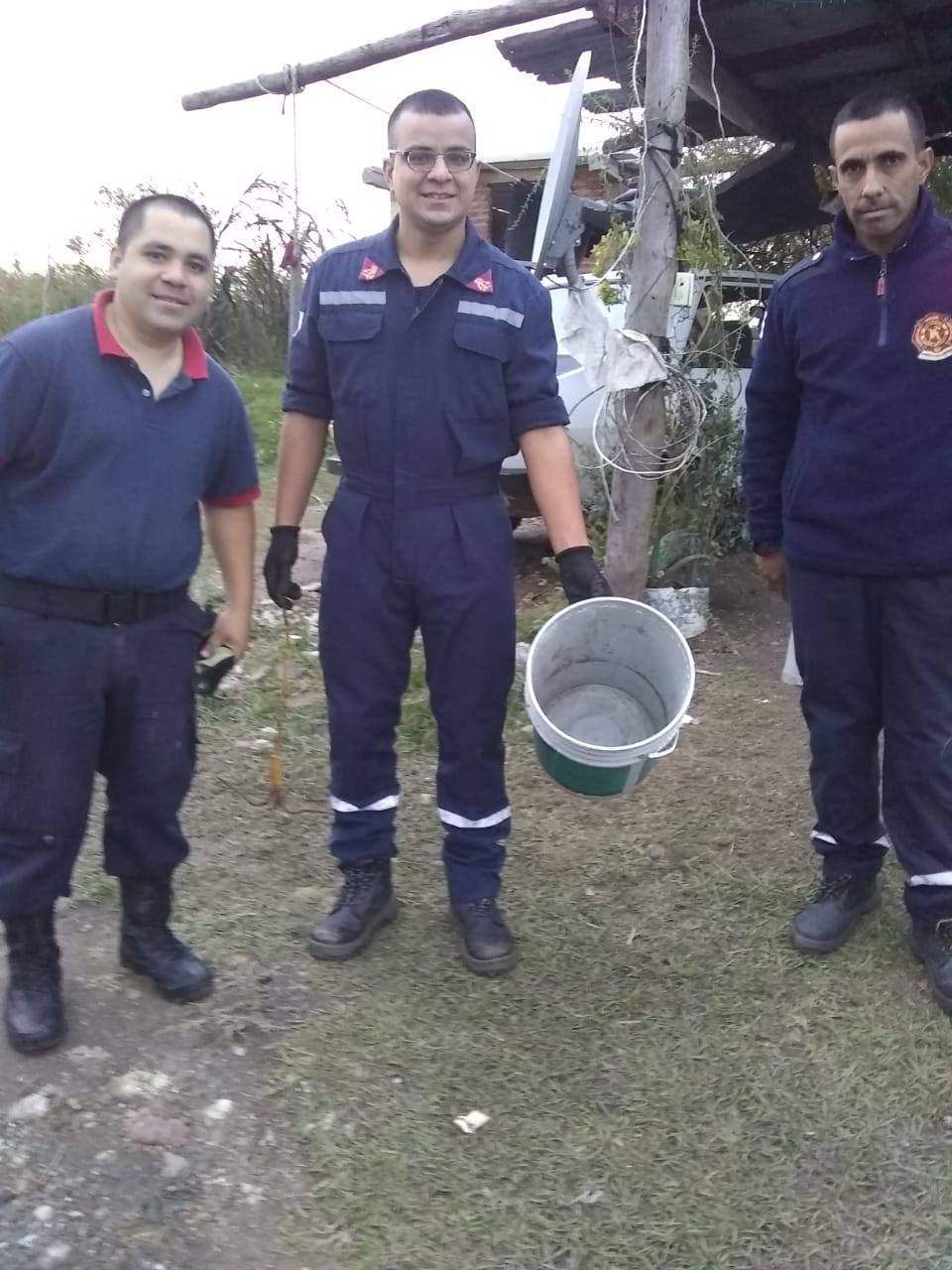 Tres miembros del Cuerpo Activo de Bomberos Voluntarios acudieron al llamado de un vecino que solicitaba que retiren una víbora hallada en el interior de su domicilio.