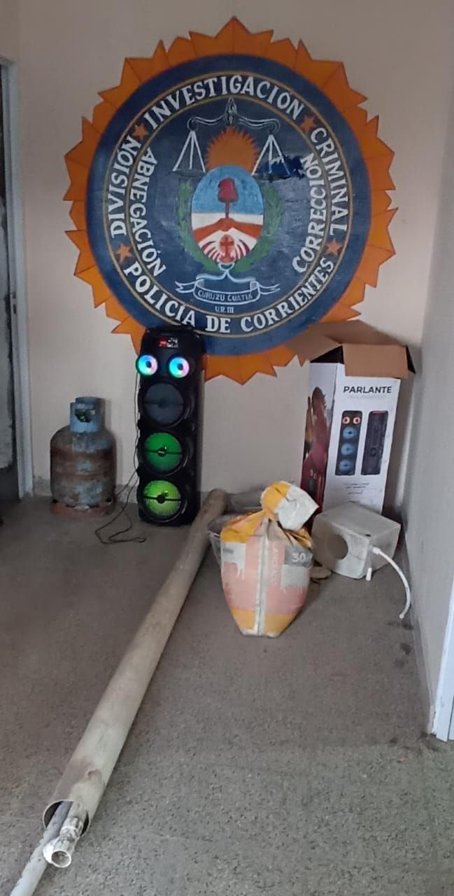 En el lugar se procedió al secuestro preventivo de un parlante inalámbrico, -marca Dima-, un tubo de gas de 10 kg, dos baldes, una mochila de baño, tres caños de PVC, de diferentes medidas y una bolsa de pegamento.