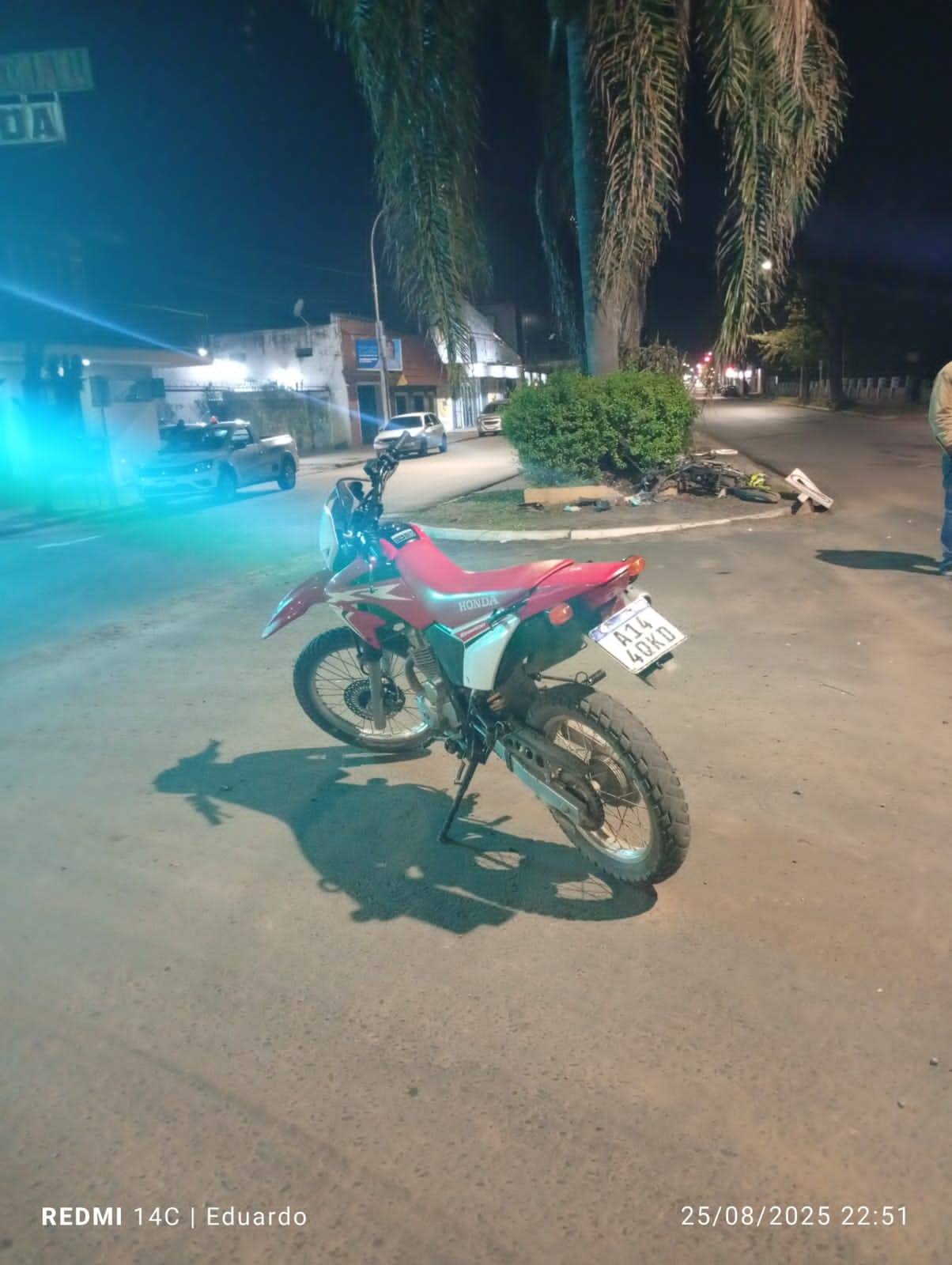 Dos motos protagonizaron en horas de la noche del lunes una fuerte colisión en calle Berón de Astrada, a la altura de la Rueda Rotaria.