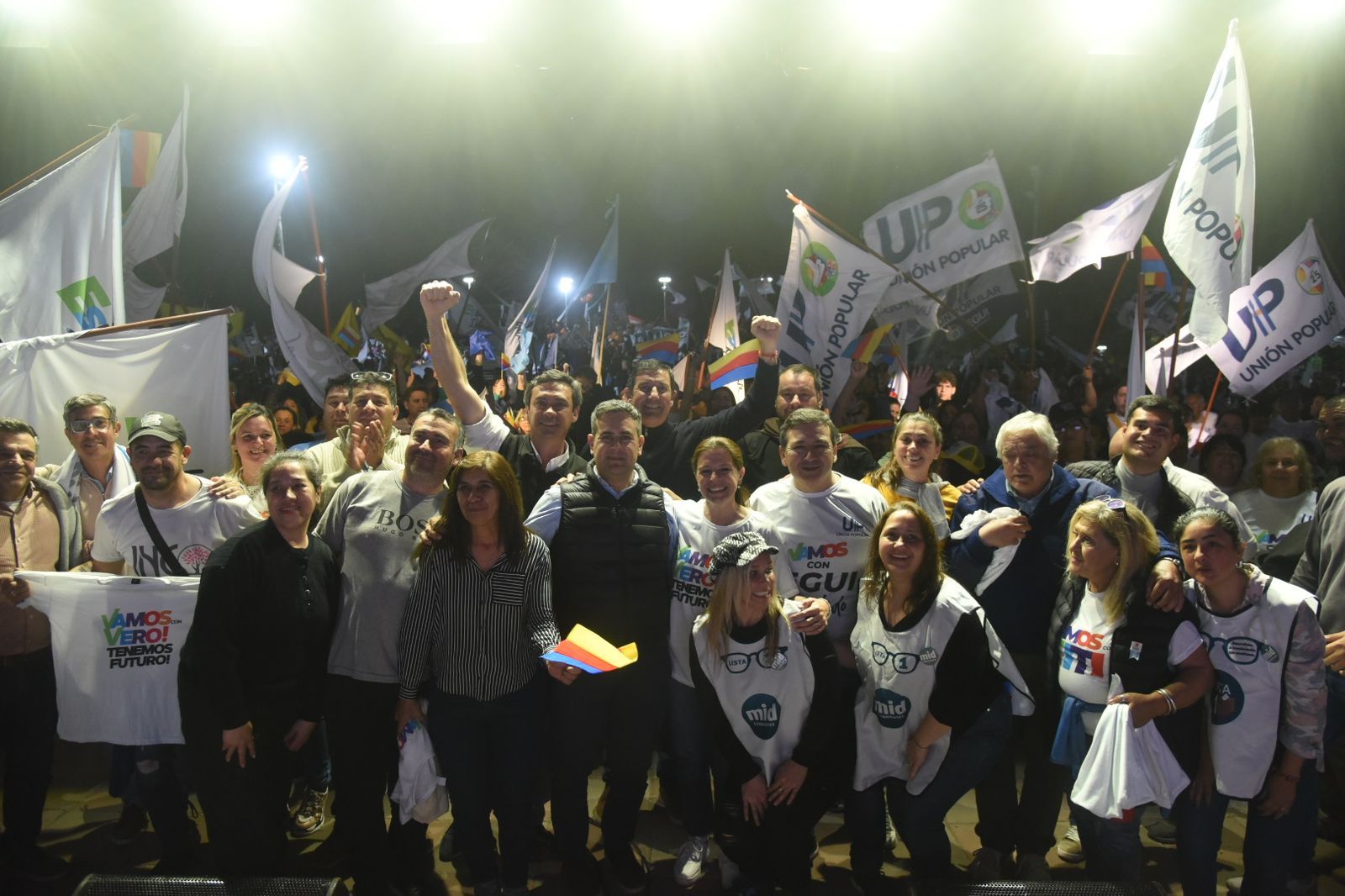El acto contó con la presencia de la fórmula de candidatos a Intendente y Viceintendente, Verónica Espíndola y Miguel Guenaga, el candidato a Concejal José Irigoyen, el Diputado Provincial que busca su reelección Egui Benítez, el Senador Provincial Henry Fick, los candidatos a concejales de la lista oficial y colectoras, así como referentes y dirigentes de los partidos socios.