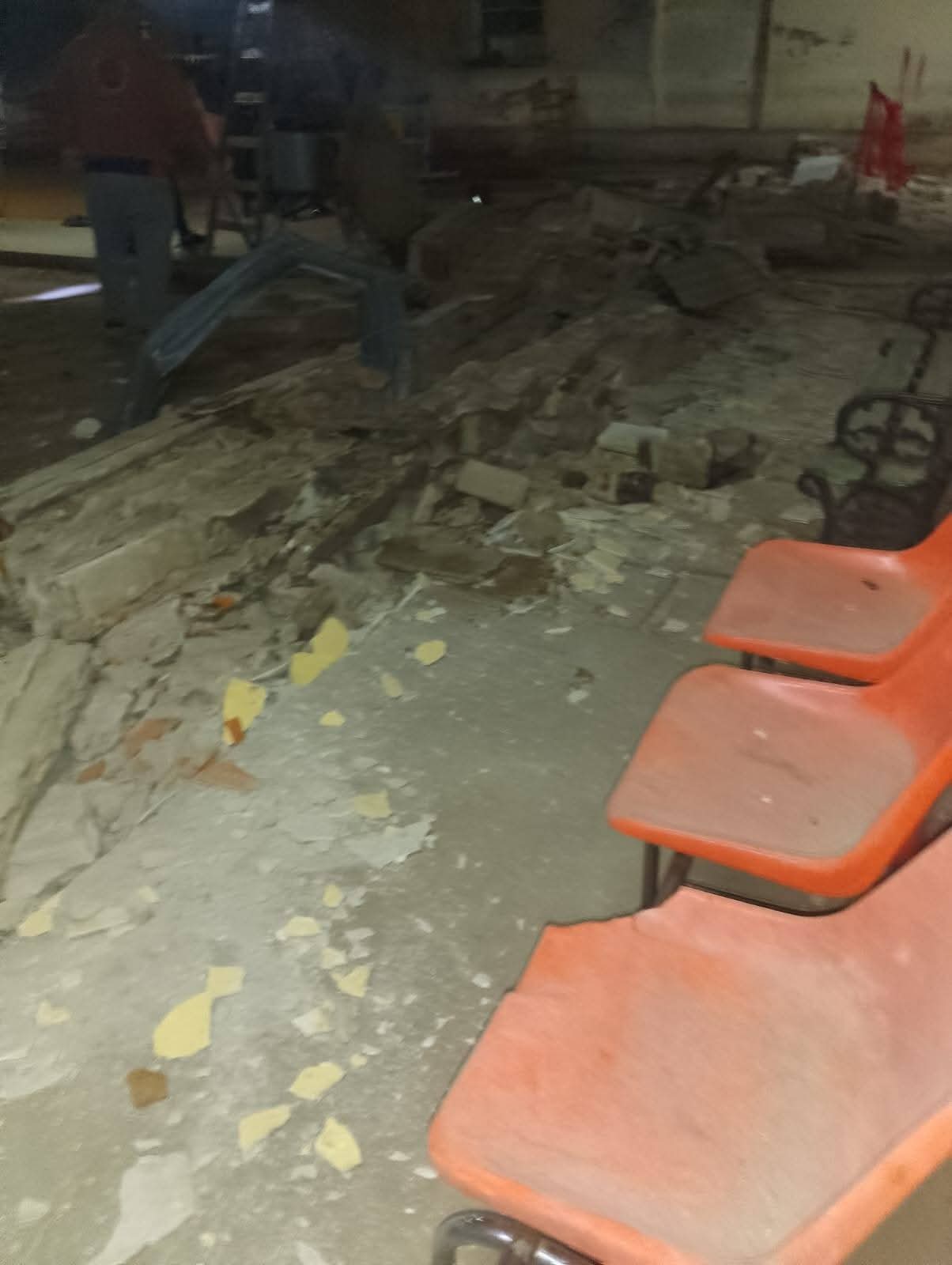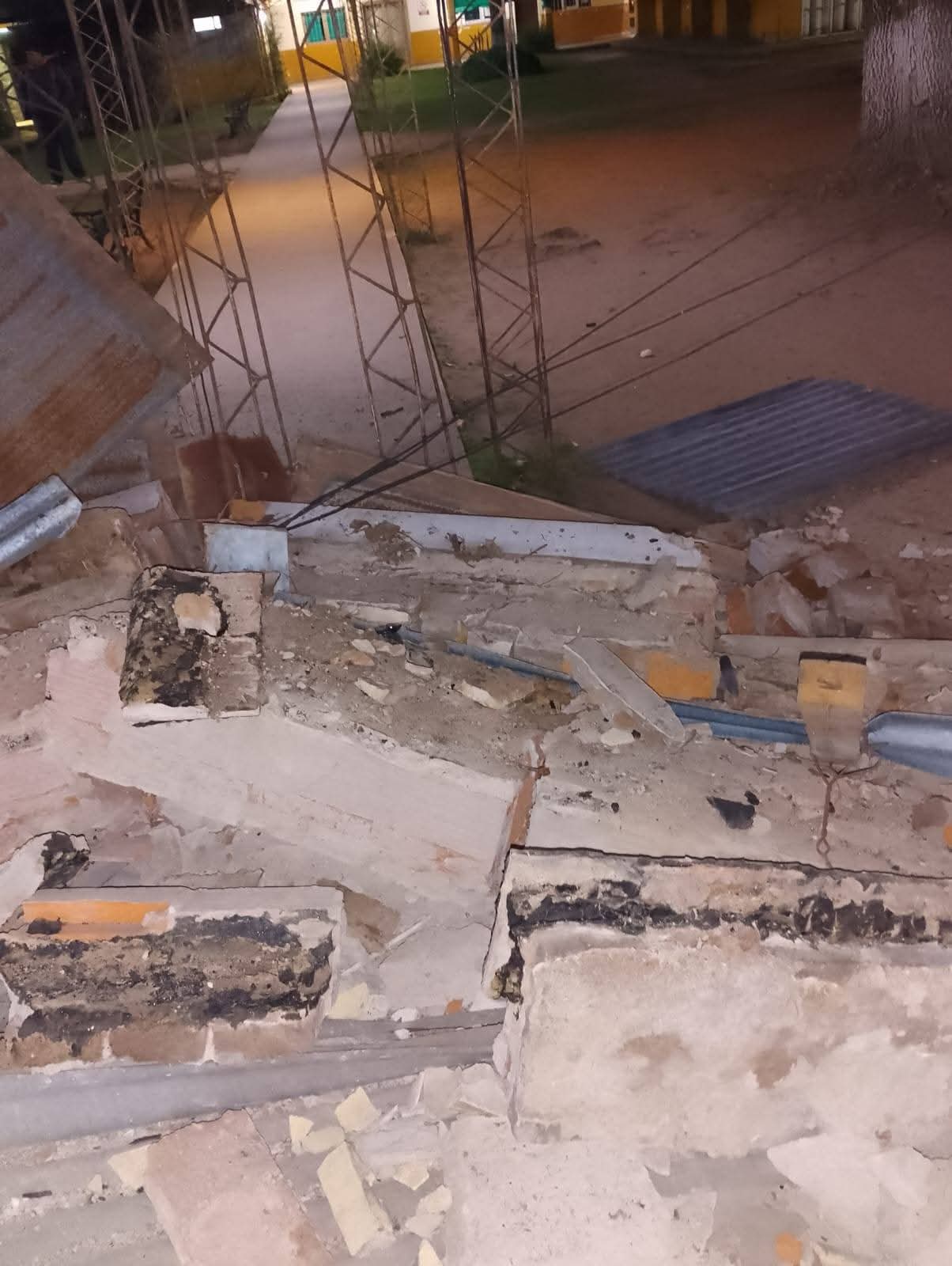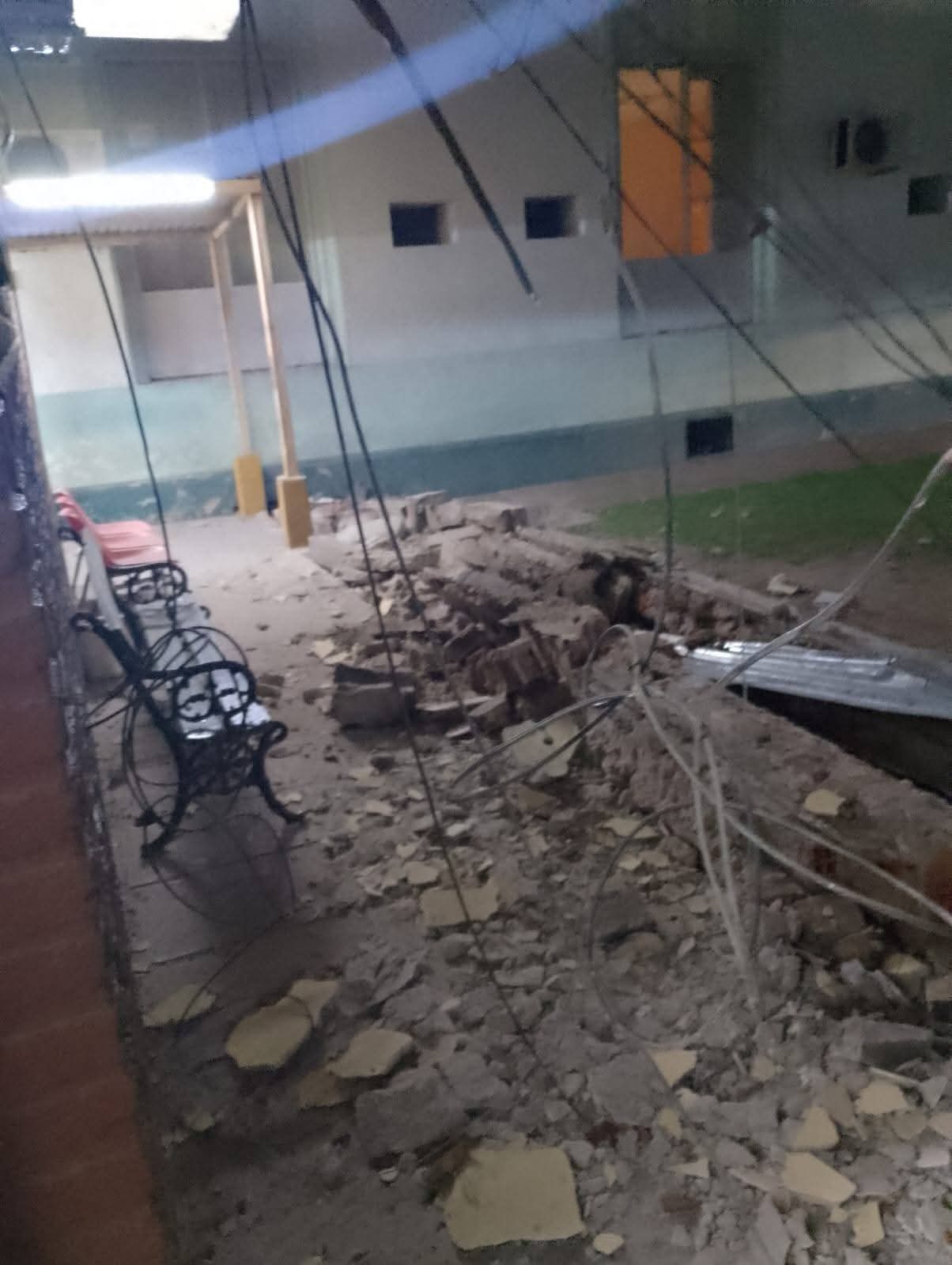 En las imágenes se observan restos de la mampostería esparcidos sobre el piso que da al frente y acceso al mencionado servicio, ubicado en la parte interna del nosocomio.
