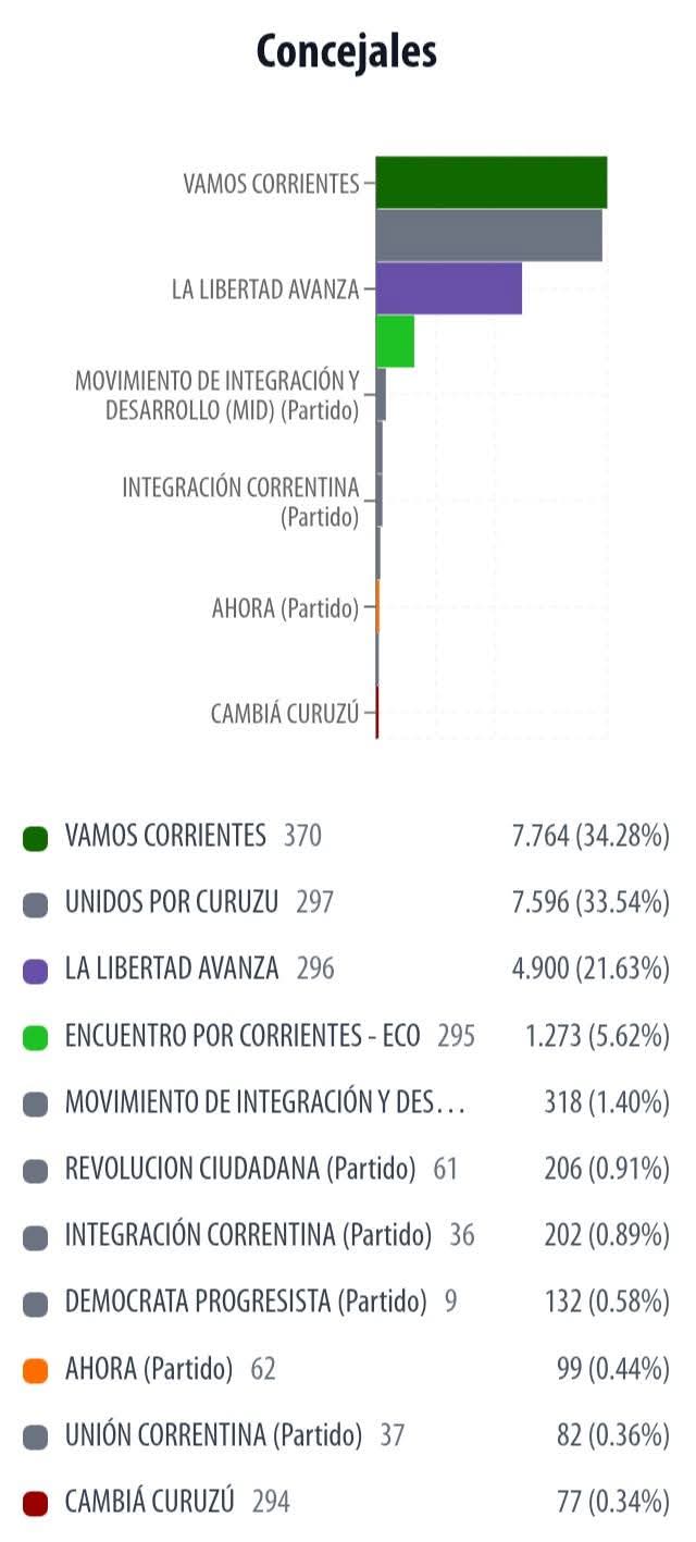 A continuación compartimos los números finales exhibidos por la Junta Electoral de la Provincia de Corrientes.