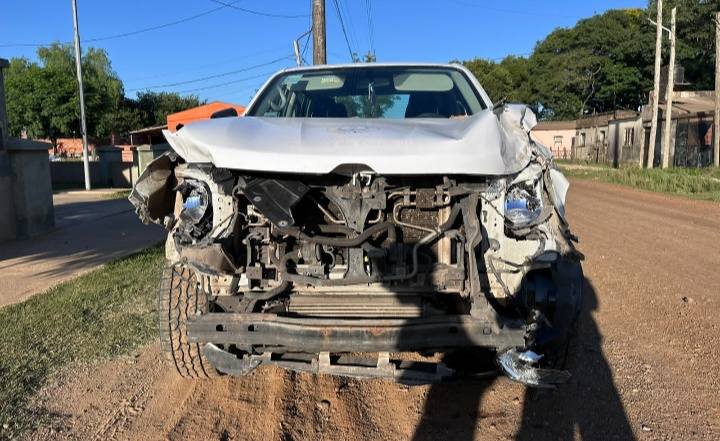 Se trata de una camioneta Renault Alaskan Confort 4x2, perteneciente al Ministerio de Salud, conducida por un masculino, quien era acompañado por un Médico y una mujer, procedente de la localidad de Sauce con destino a Corrientes Capital, que impactó de frente contra dos equinos que se encontraban sobre la cinta asfáltica.