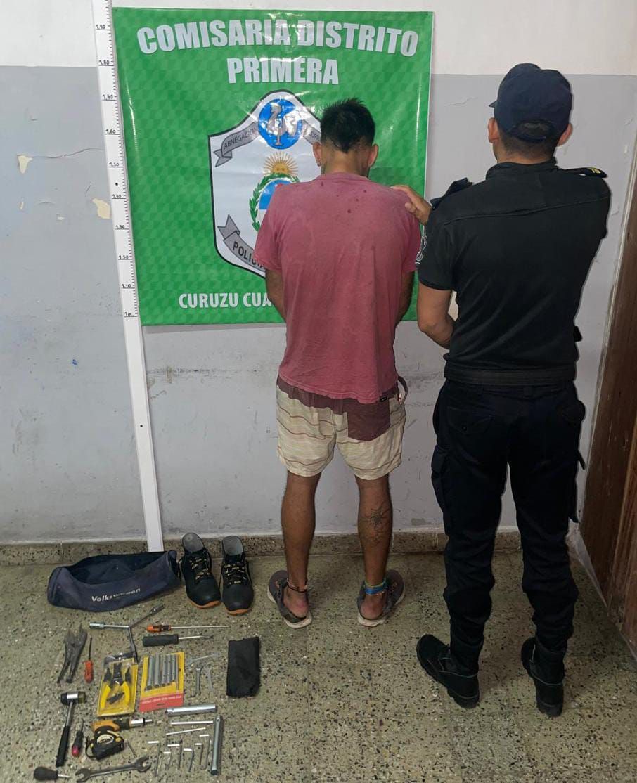 En forma simultánea, los efectivos son alertados por un llamado a la dependencia que daba cuenta de la sustracción de varias herramientas del interior de un taller y que esta persona tendría estrecha relación con el hecho ocurrido.