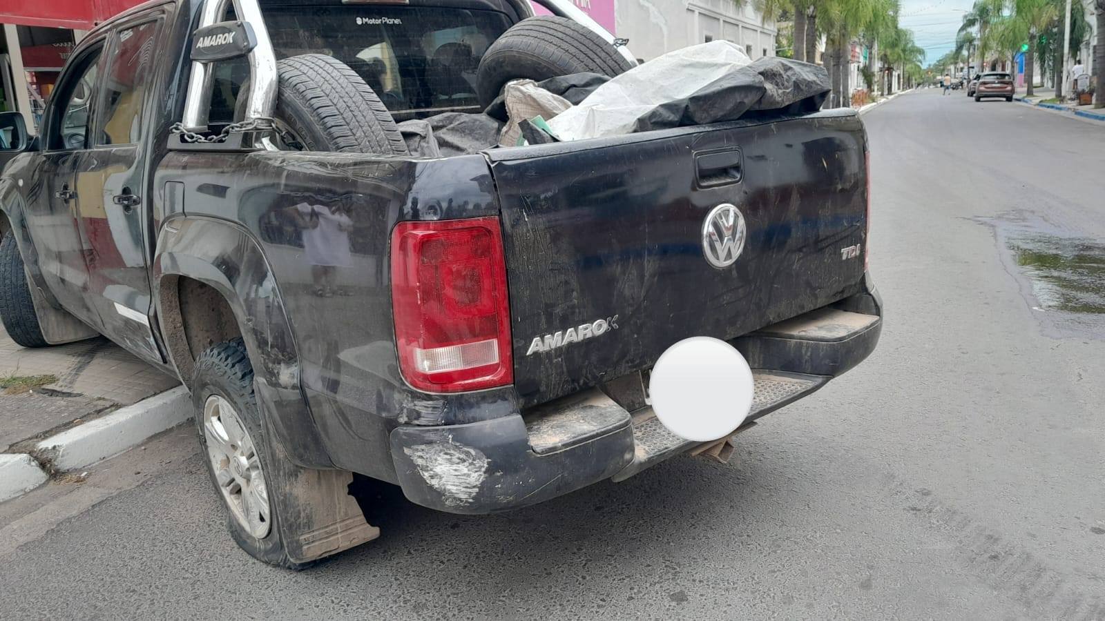La camioneta terminò sobre la vereda de un conocido negocio, impactando contra una de las columnas del techo exterior del local.