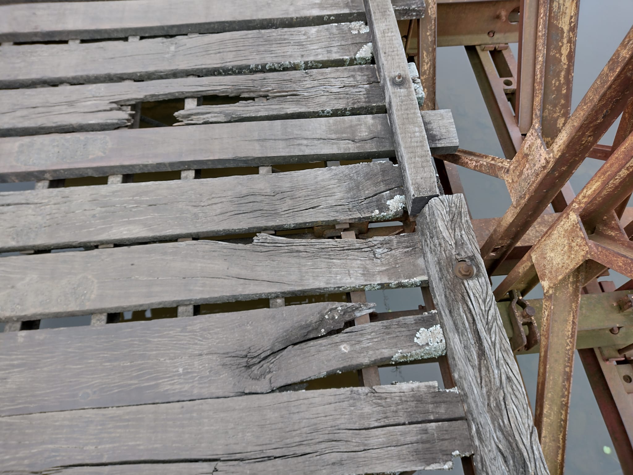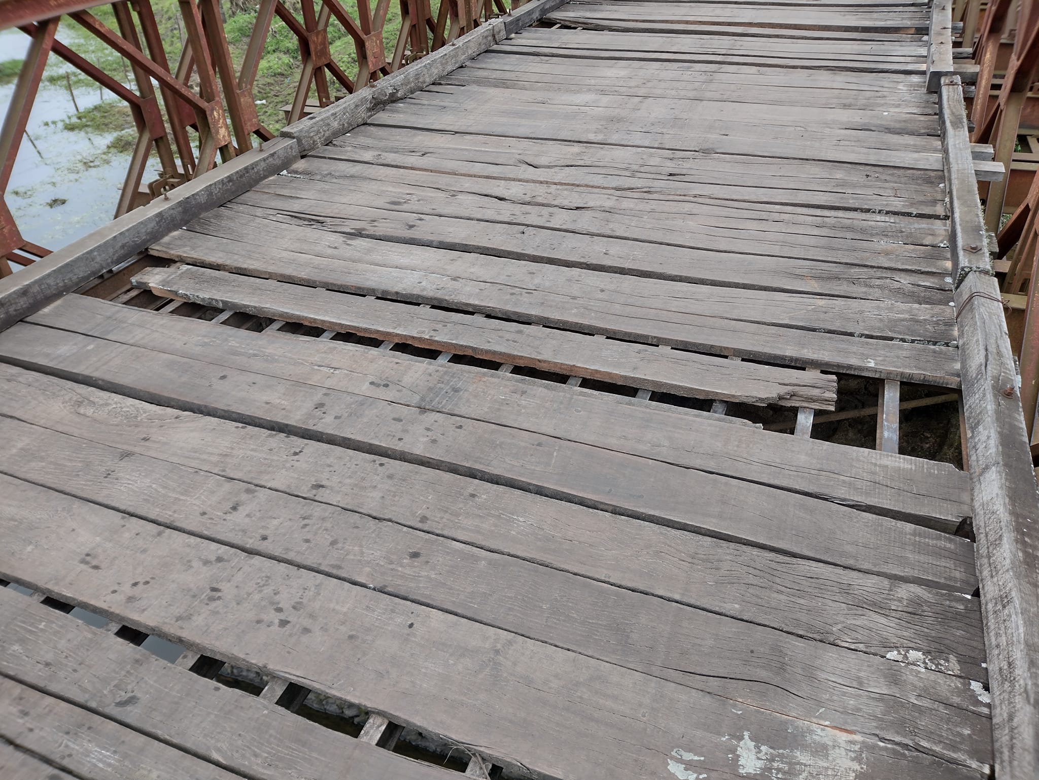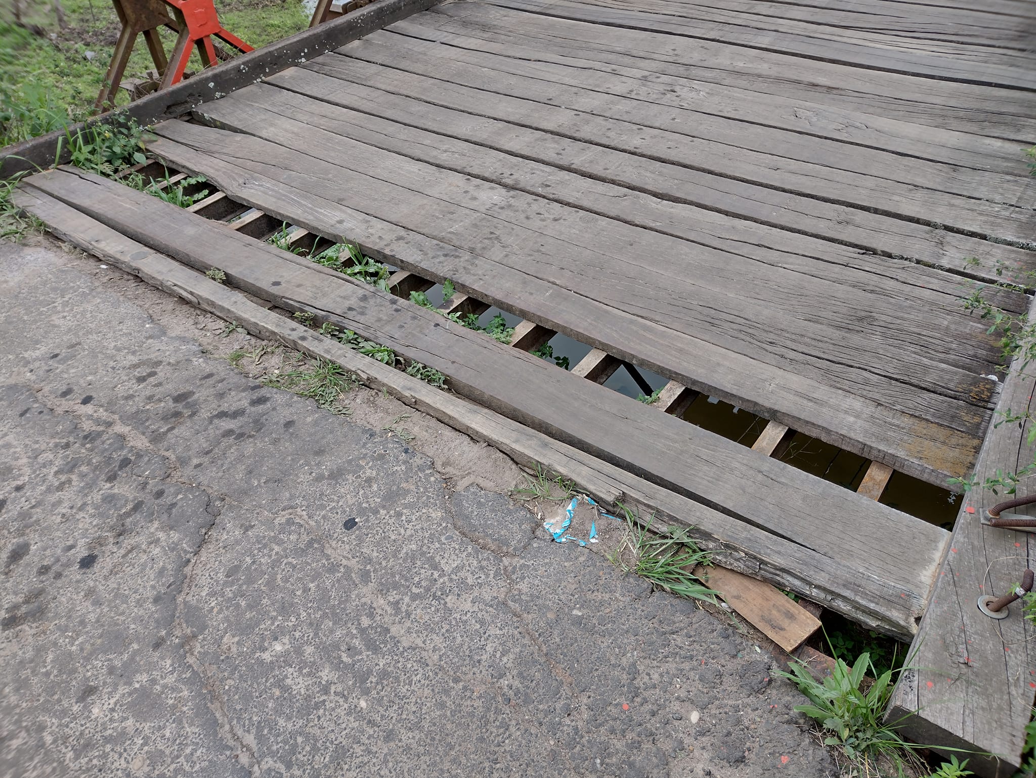 Pero también observamos lo arriesgado y peligroso que es poder pasar cada día, muchas maderas están seriamente afectadas por la intemperie, problemas que se suman a algo que lamentablemente se convirtió en costumbre como es el robo de las maderas.