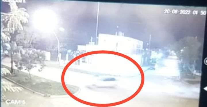 En las cámaras de seguridad de la esquina se observa al vehículo circular a alta velocidad en sentido sur a norte por Laprida y que al llegar al cruce con Irastorza pierde el control, despistando violentamente, chocando contra el parterre y arrancando una palmera en su camino.