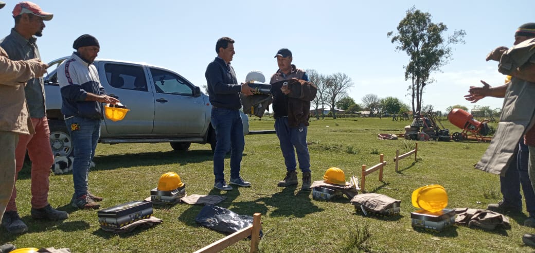 El Comisionado Interventor Dante Romero entregó ropa de trabajo y elementos de seguridad a los trabajadores contratados para ejecutar la obra de viviendas del Programa Oñondivé que se encuentra en su primera etapa.
