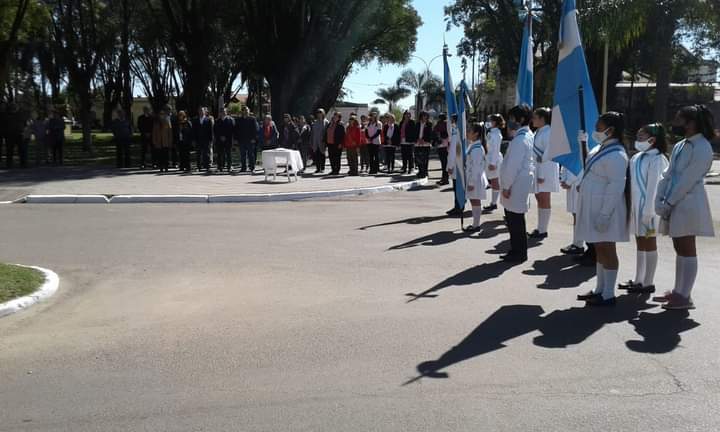 En el acto realizado en El Maestro y Juan Pujol se depositaron ofrendas florales y se escucharon palabras del profesor Sergio Sandoval docente de la Escuela Sarmiento y el alumno e una poesía muy bien recitada por el alumno de segundo grado Ciro Tomás Ramos recitó una tierna poesía.